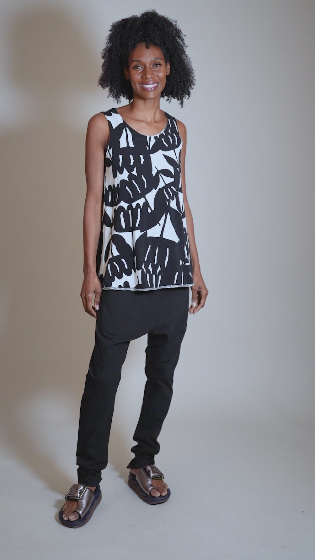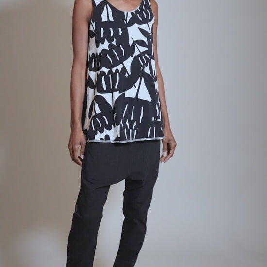 Knit Jersey Refined Tank, Black Print
