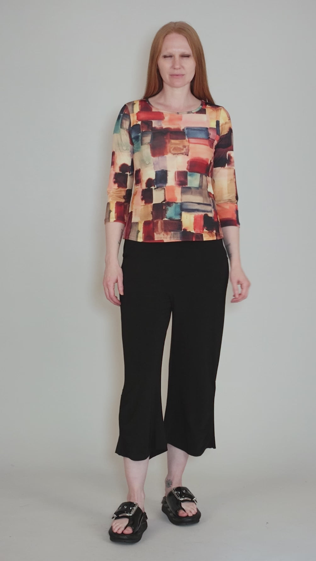Made in a slippery-smooth jersey, this brightly hued basic tee will offer a nice pop of color when layering under sweaters and jackets come the cold weather. It has a rounded neckline, with a set-in shoulder and three-quarter-length sleeves. Running true to size.