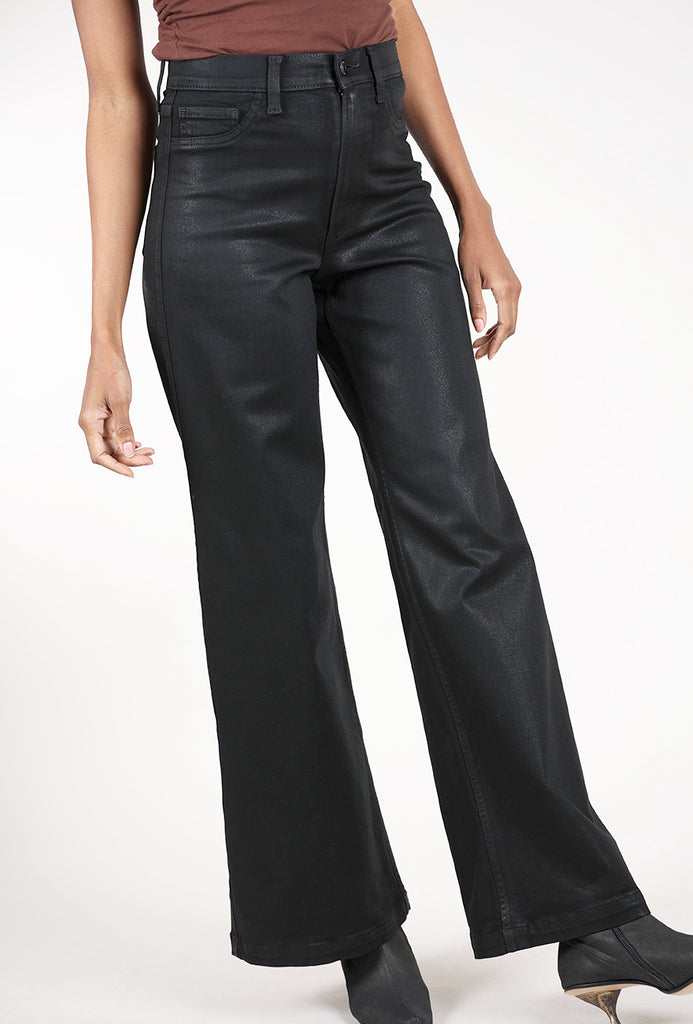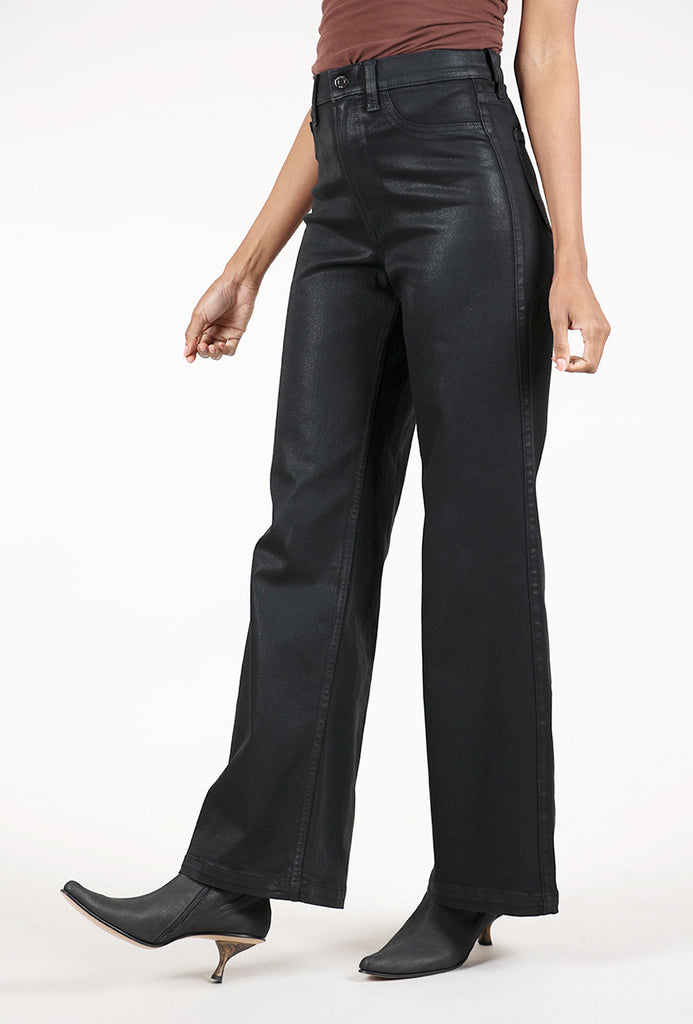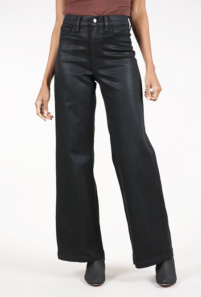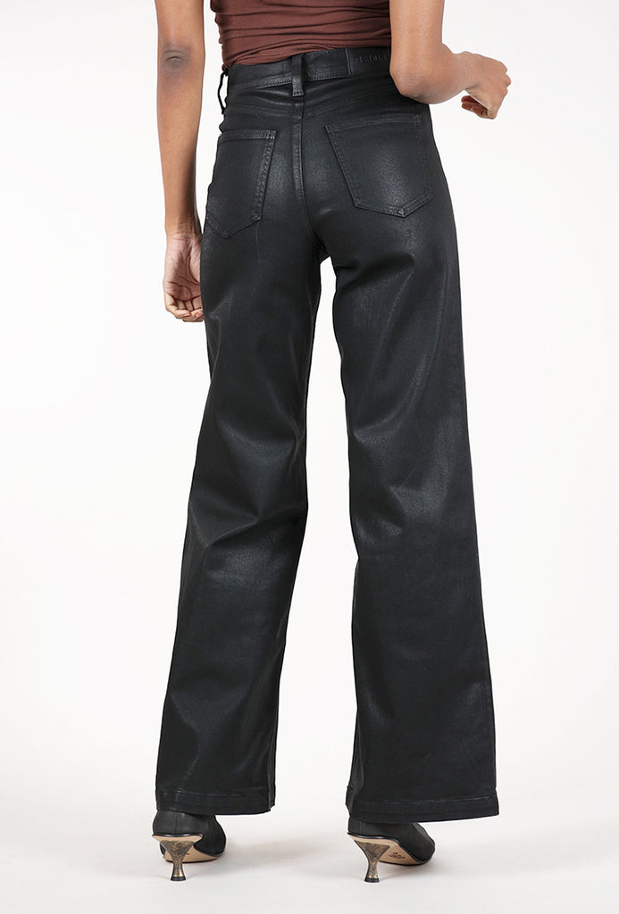 Pistola's best-selling wide leg that commands the room, Lana sits at a high rise with an ultra wide-leg silhouette and full-length (33-inch) inseam that feels effortlessly dramatic. The ultra-wide opening creates maximum impact while the relaxed fit flows beautifully. This version of Lana is crafted in comfort stretch denim that's been coated with a rich black finish.