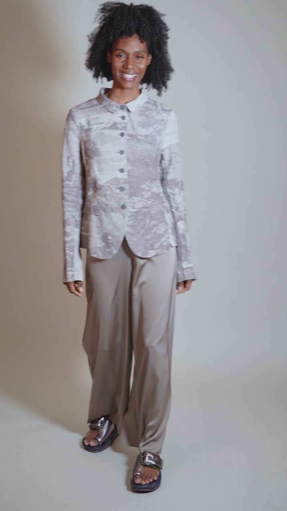 Crafted in a substantial linen, this lovely jacket has a set-in shoulder, long sleeves and a full button-front placket; the face-framing collar is tidy and almost shirt-like. The silhouette is rather straight and traditional, with a hip-skimming length. Running true to size.