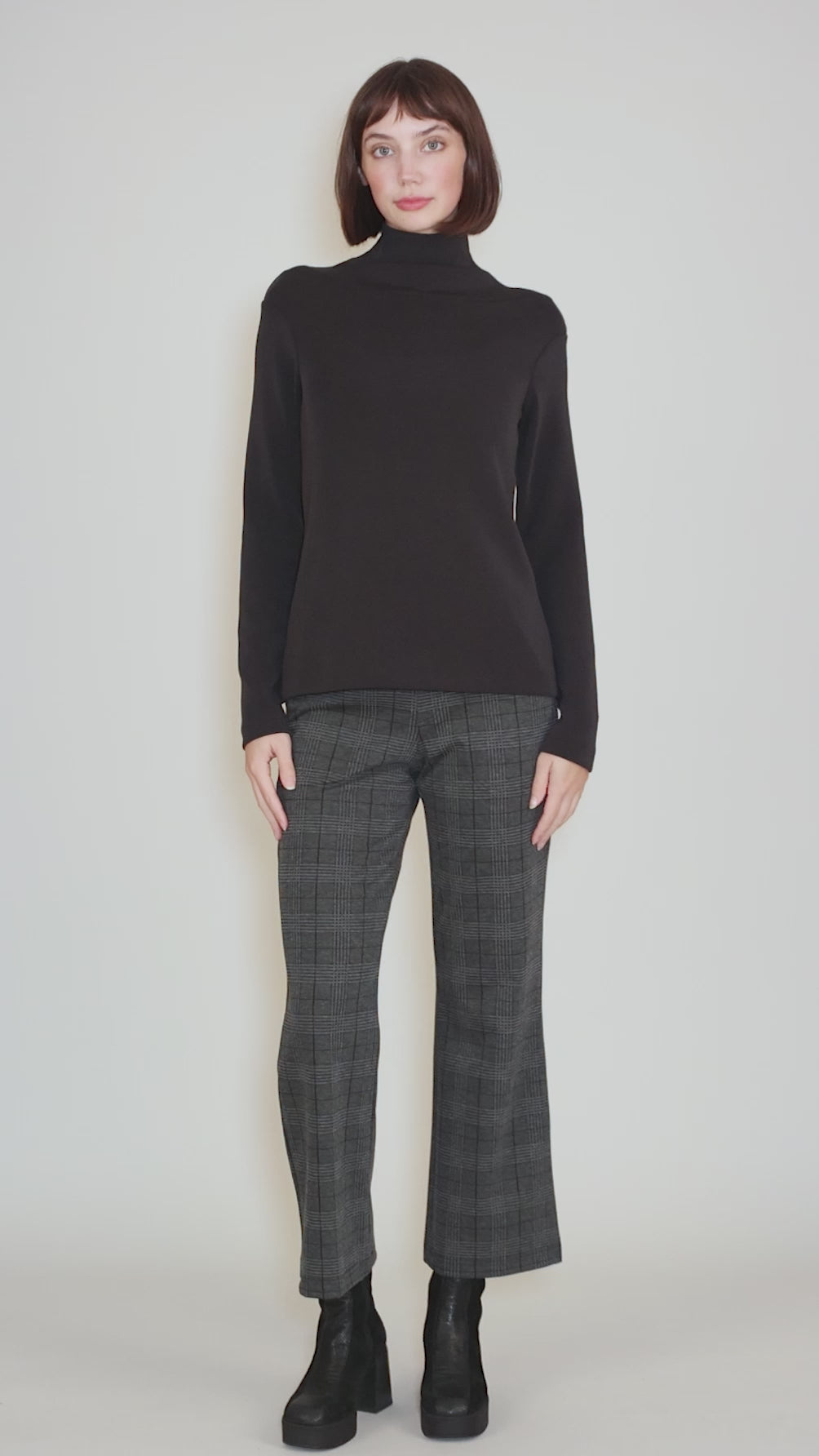 We love the fabric here, a supple, smooth poly knit with enough substance to avoid clinginess but not so much so that it compromises drape. Ivak has a set-in shoulder and extra-long sleeves; squared-off seaming creates a base for the draped funnel neckline. Running true to size, as Ivak is intended to have a more tailored fit.