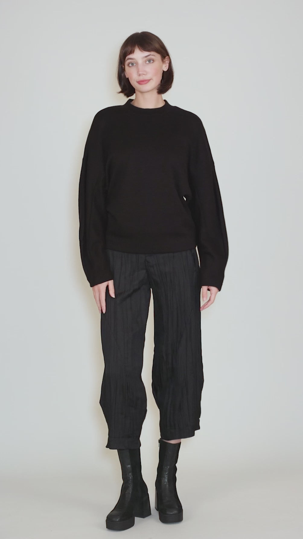 Mallovo brings a lot to the party -- just quietly so! It's done in a softly brushed knit, with a crew neckline and extra-long sleeves that balloon at the wrists. The body is relaxed, but gently follows the curve of the waist, ending in a lightly ribbed hemline. Running true to size.