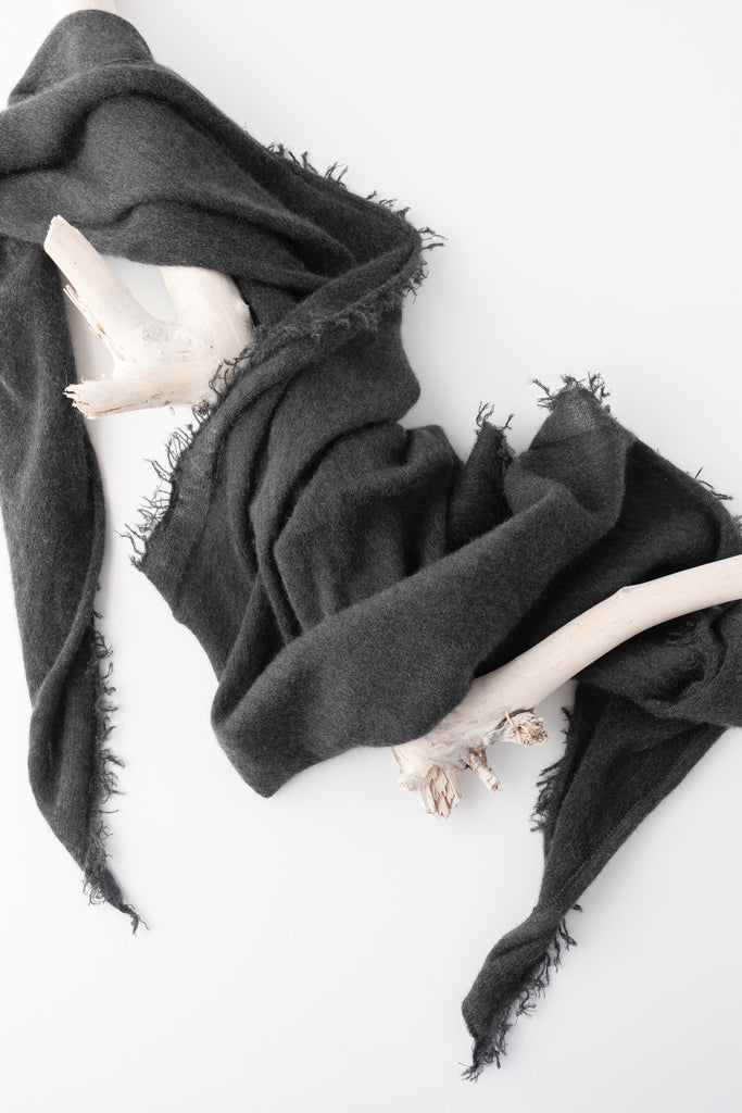A mini version of our all-time favorite Grisal scarf! The ultimate in luxury and melt-in-your-hand texture, Grisal scarves are knit on the bias, are oblong and have distressed edges. This smaller version is perfect for wearing indoors when you just need a little cozy warmth.