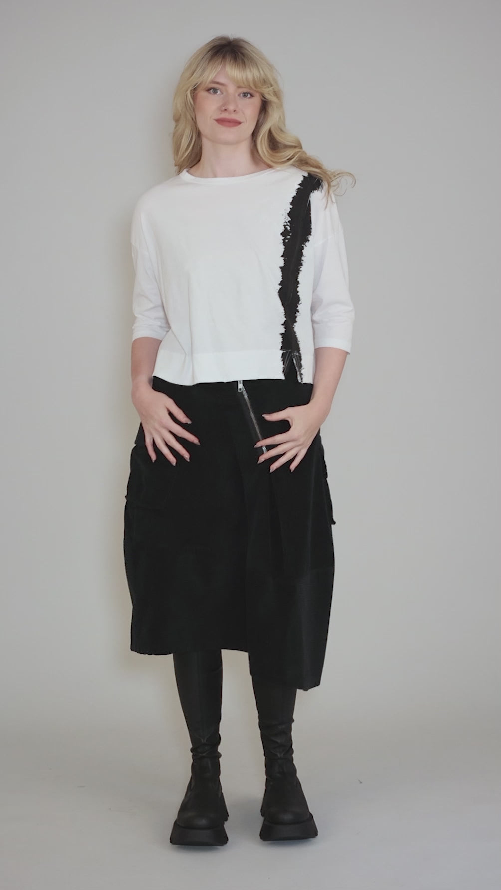 Swatch Elbow Boxy Tee, White/Black