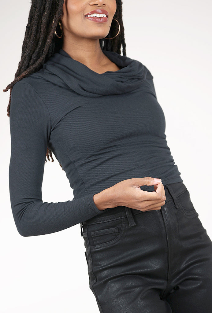 The knit that doubles as a statement, Lyra features an off-shoulder neckline, long sleeves and a close fit through the body. It's crafted in a soft, stretchy Modal blend. Running a bit on the small side. While Pistola shows this worn sexily off the shoulder, we also like it worn as a classic cowl neck!