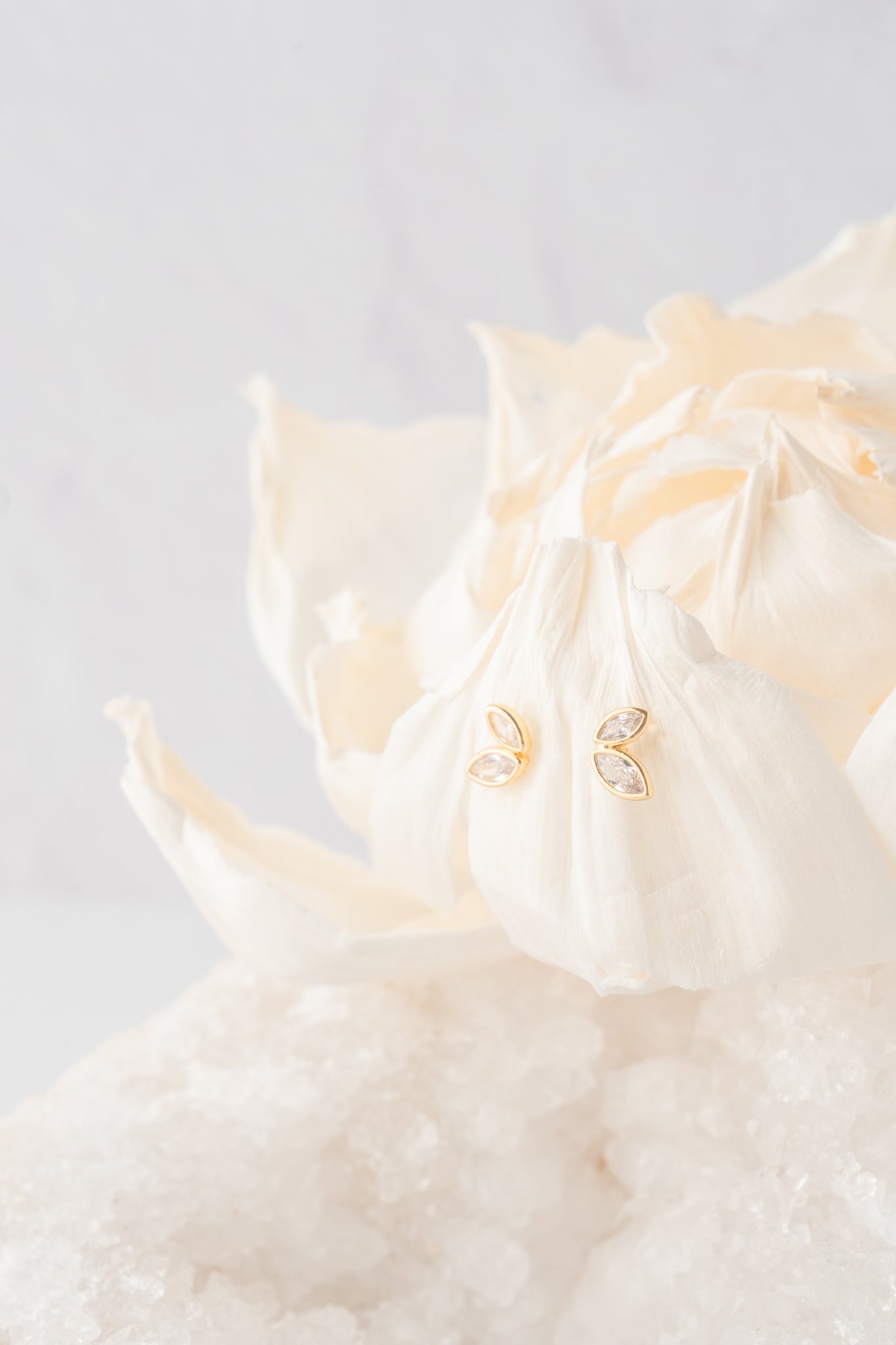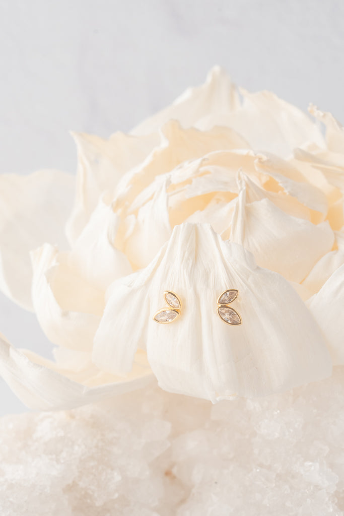 Good things DO come in small packages! These pretty studs are done in a gold-plated sterling, set with a marquis-shaped white crystals.