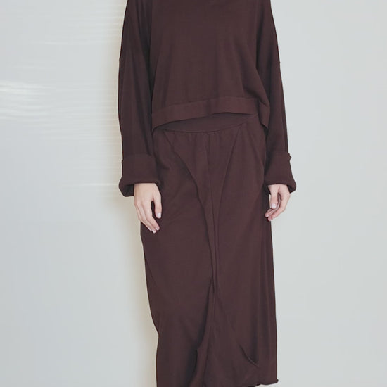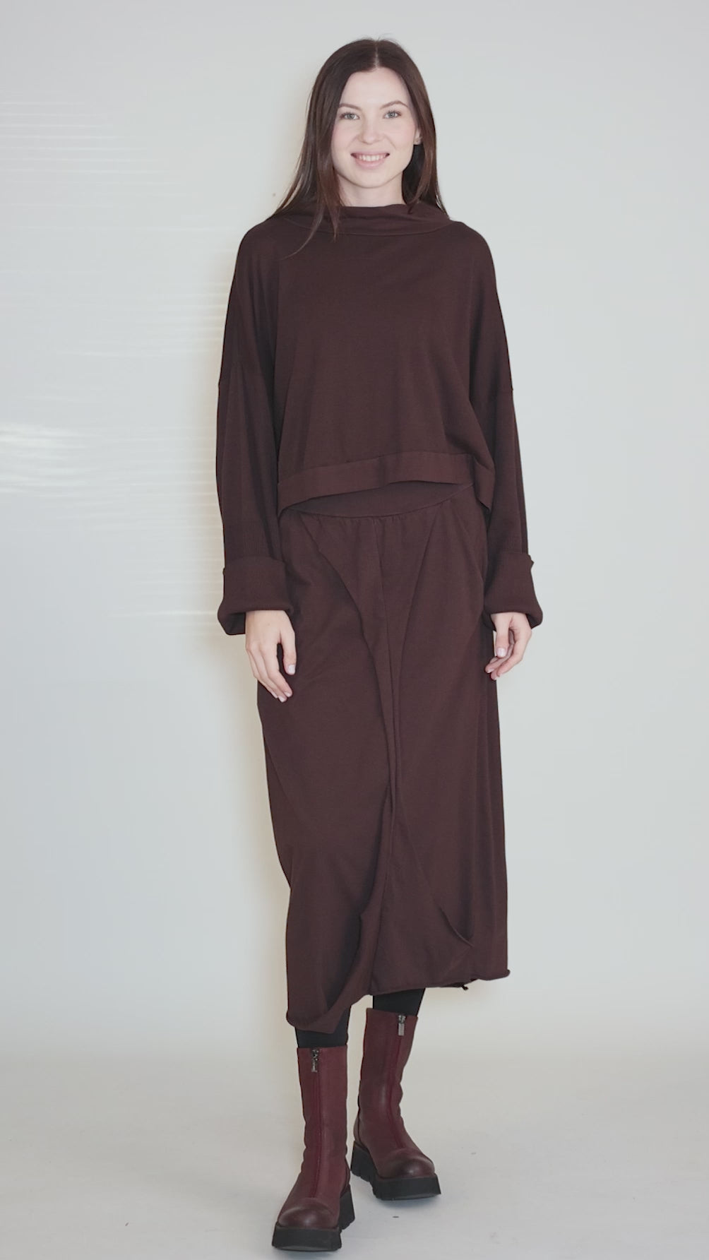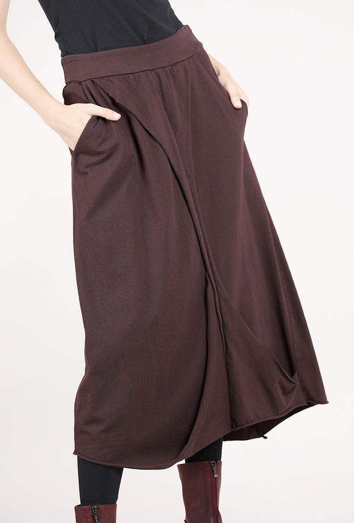 Done in a soft cotton jersey, this go-to skirt has a soft self waistband, with an A-line silhouette and an uneven hemline. Tucked and drape details in front add that signature Cynthia Ashby touch. Running true to size to slightly large.