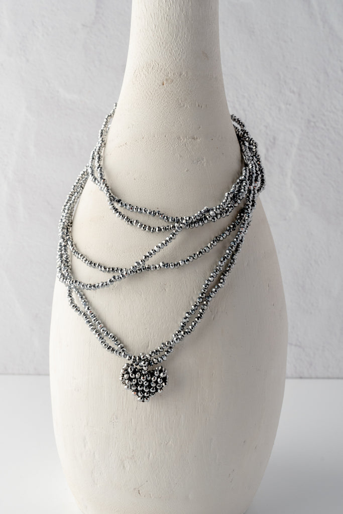 A super-fun necklace crafted with multiple strands of faceted crystal beads and a large beaded pendant in the shape of a heart. An oversized lobster-clasp closure makes it super easy to put on and off! Up your accessory game with this sparkly, fun necklace!
