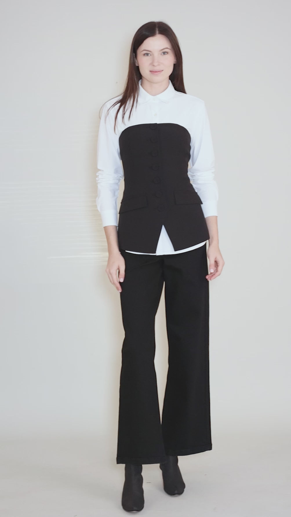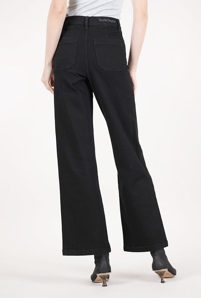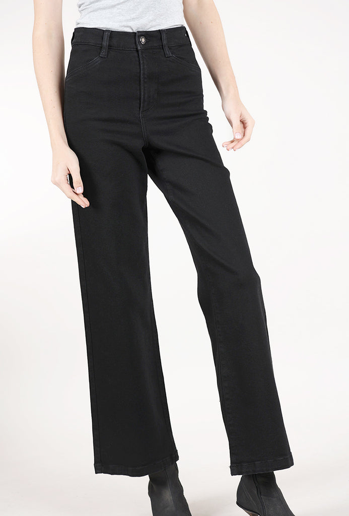 The relaxed wide-leg, wide-hem Mischa jean has a vintage-blue stonewash and hits at the ankle on most wearers. There are no front pockets for a clean silhouette, and the hint of stretch means that this soft denim will hold its shape and structure.