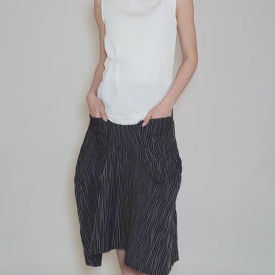 Such a great shape! Miyako has an artfully draped neckline and a relaxed fit through the midsection; a crimped detail at one hip adds further ease to the silhouette. This is a great top with all of Porto's "complicated" bottoms, pairing especially well with the brand's skirts and wider-legged pants. It's made in a lightweight, micro-pleated rayon-cotton blend. We find this is running on the small side.