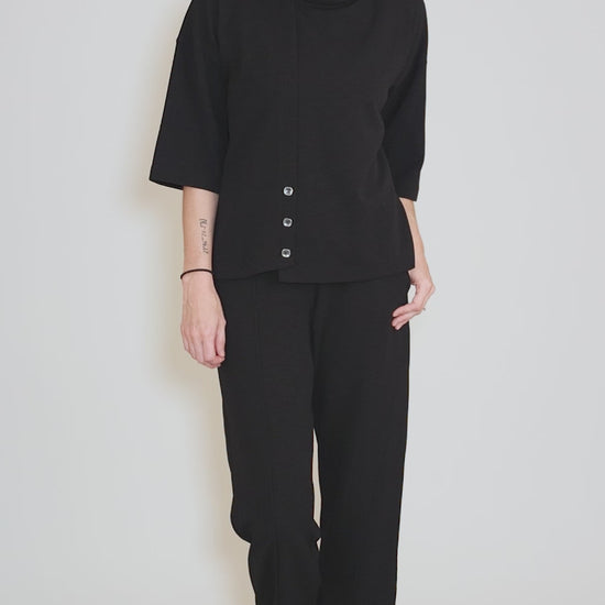 Effortlessly dressy and crazy comfortable? Sign us up! Moxie is made in a lightly textured crepe that has a silky-smooth feel on the skin, with an elastic waistband in back (flat in front) and easy, pull-on styling. The legs are relaxed, tapering easily to the ankle where a small front slit sits; pockets rest on the hips. It coordinates beautifully with Beau Jours' Aelin jacket or Morgana top. The fit is relaxed.