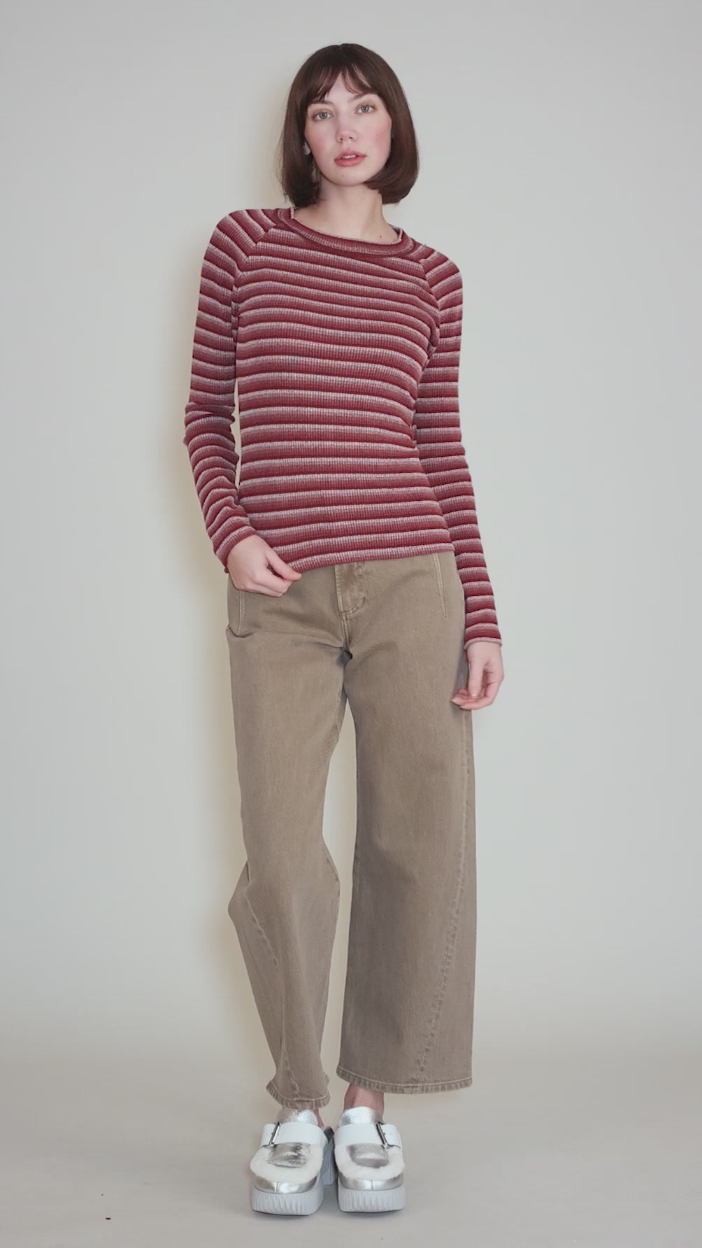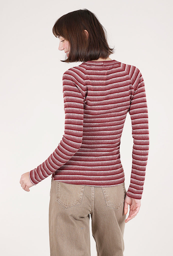 Multi Stripe Slim Top, Burgundy Mix