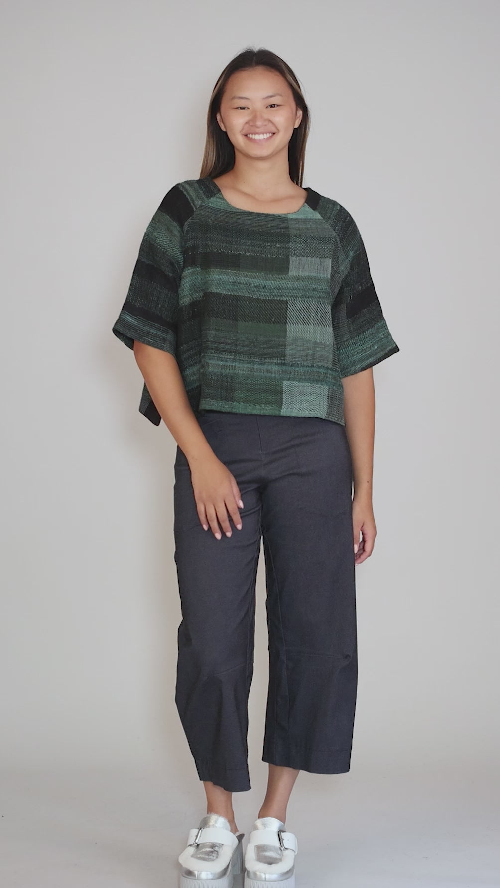Texture Raglan Boxy Top, Mint/Black