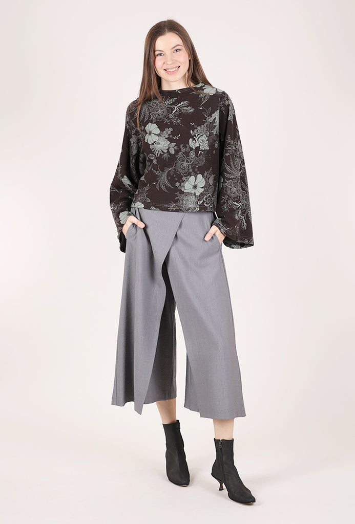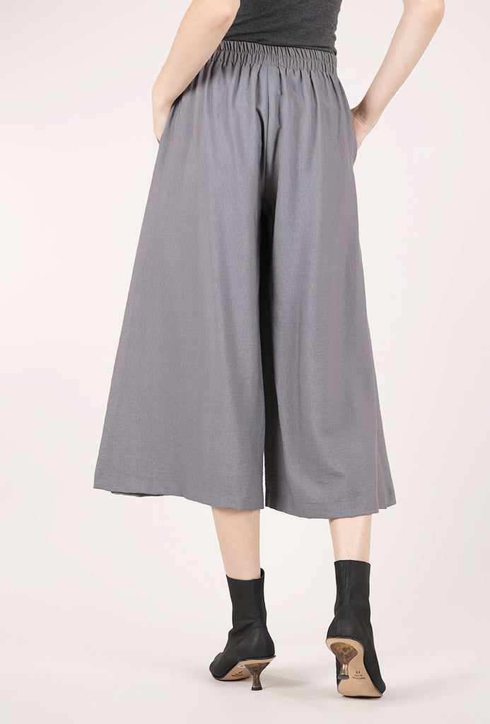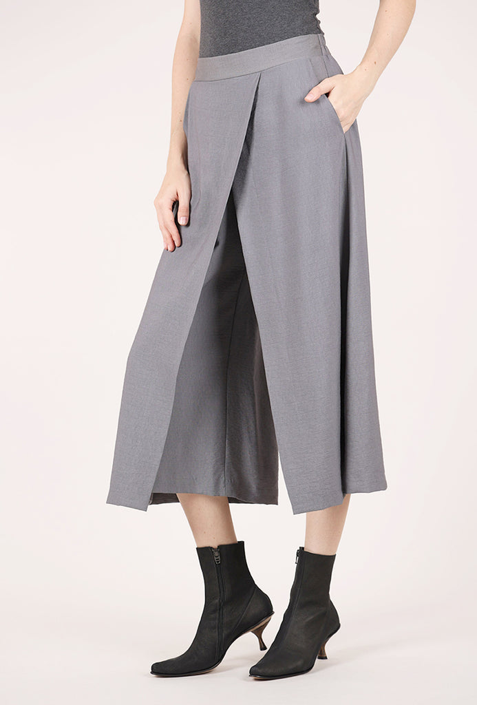 Made in a crisp crepe, Meadow has all the ease of pants, while a very cool crossover detail in front suggests the look of a long skirt. This piece sports a flat waistband in front and elastic in back, and full, straight legs that stop above the ankle. So simple, yet so distinctive!
