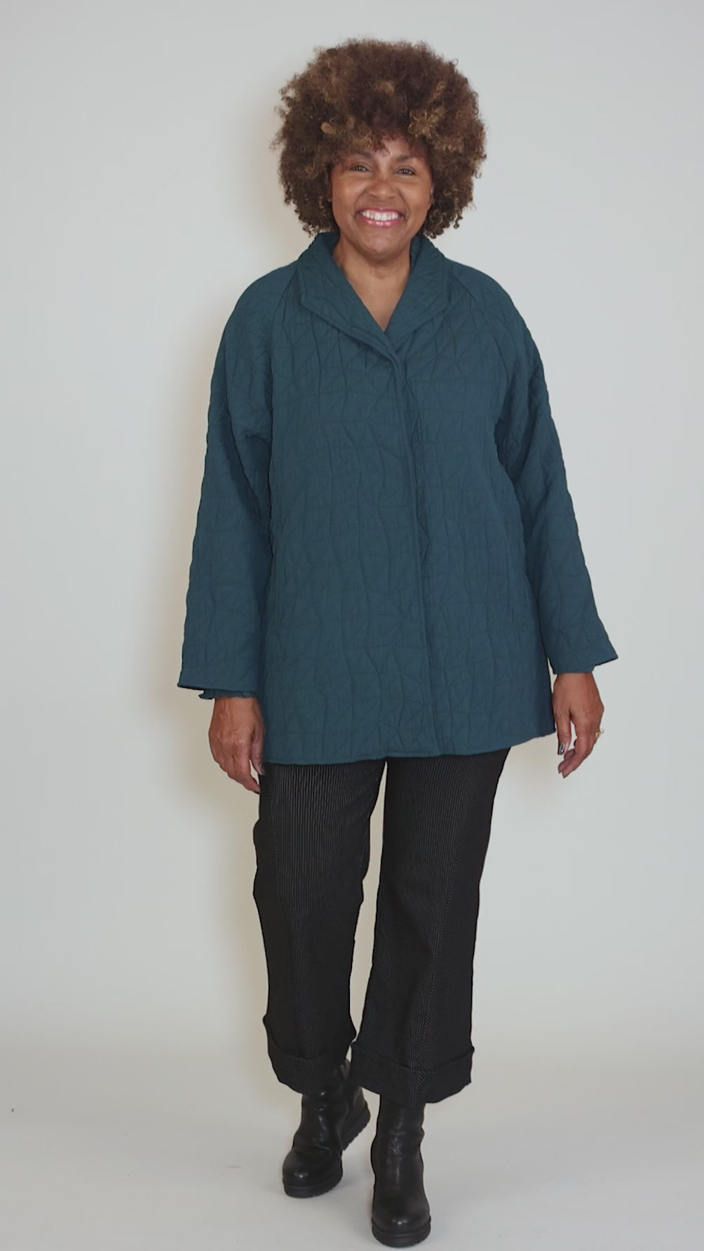 Quilted in a sleek poly blend with a bit of sheen, this lightweight jacket has a relaxed, A-line silhouette and a hidden magnet-front placket. Bracelet-length sleeves and side slits add to its easy vibe. Love the magnet closures!