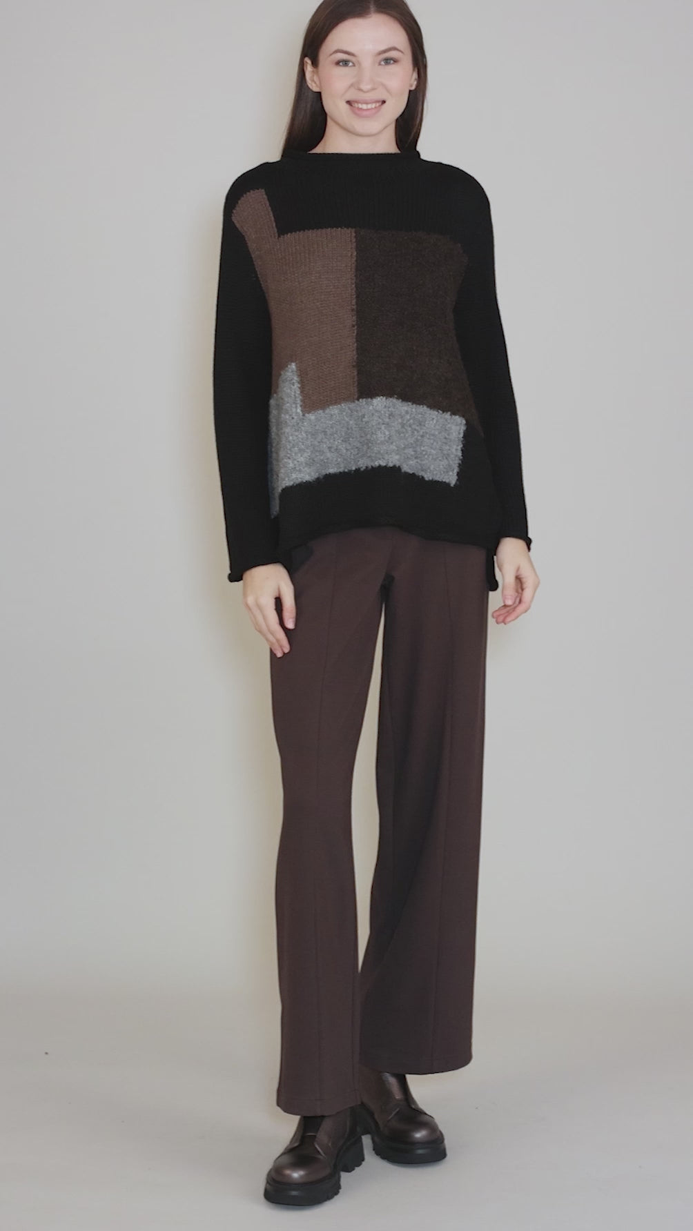 The fabric here is terrific, a smooth, substantial ponte knit, both sleek and comfortable. The pants have traditional trouser styling, with overlocked seaming and a set-in waistband. The legs are full and straight, and full-length for most wearers.