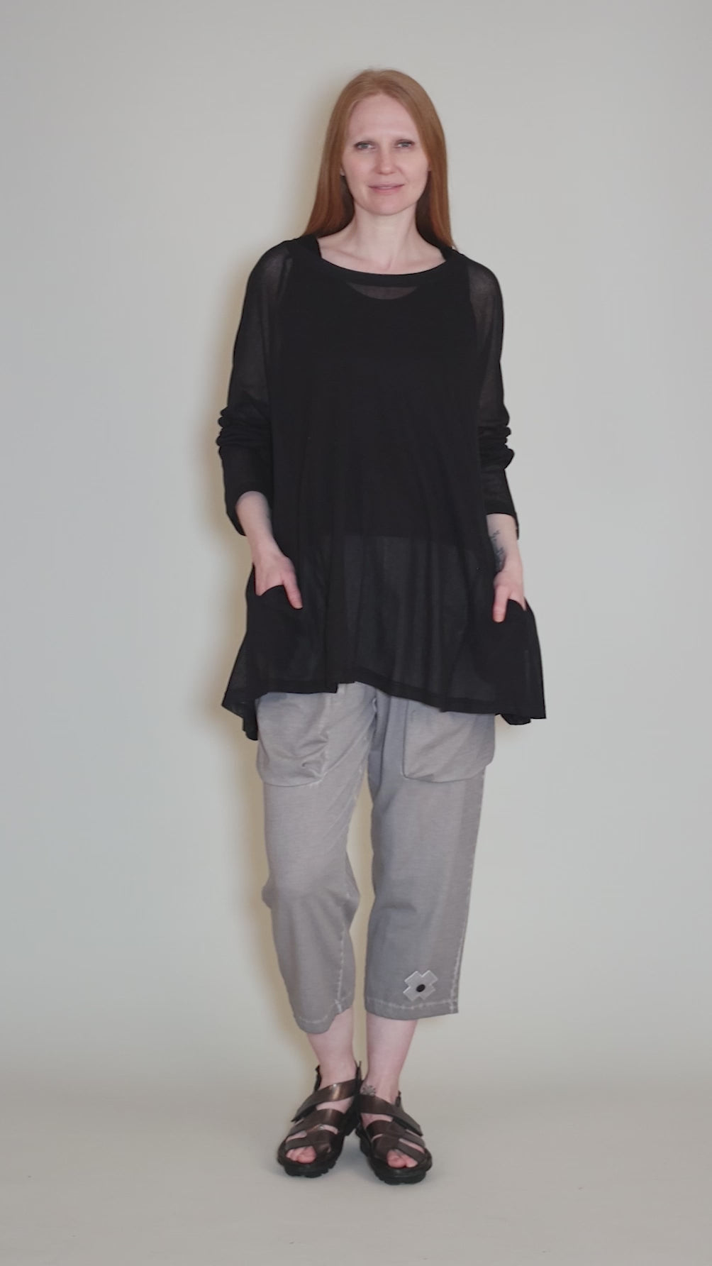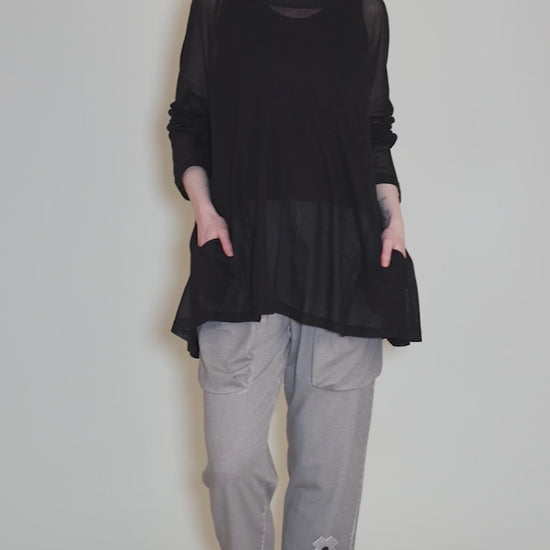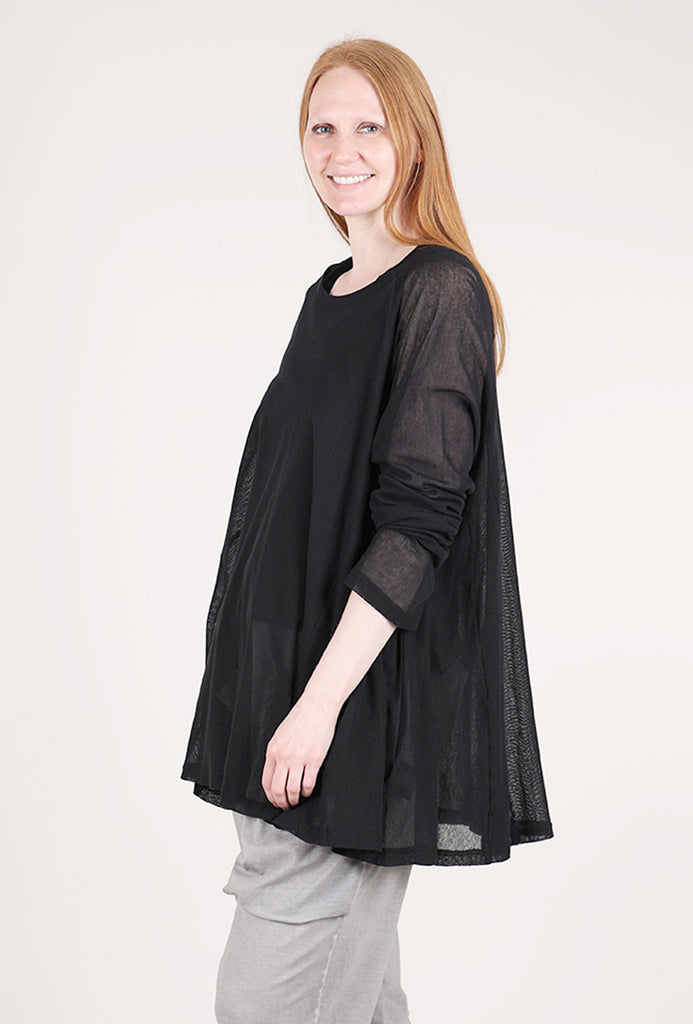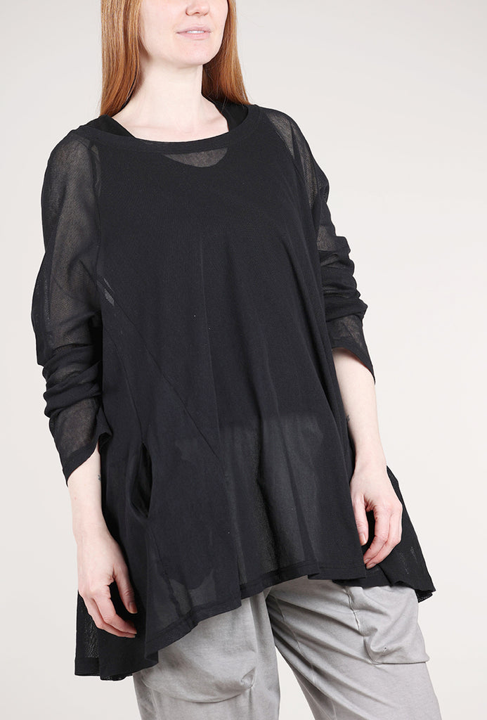 A mesh version of Pluslavie's best-selling sweatshirt! This top has a wide neckline, with extra-long raglan sleeves and a very full, A-line silhouette. The hemline is high-low, with slit pockets on the side seams.