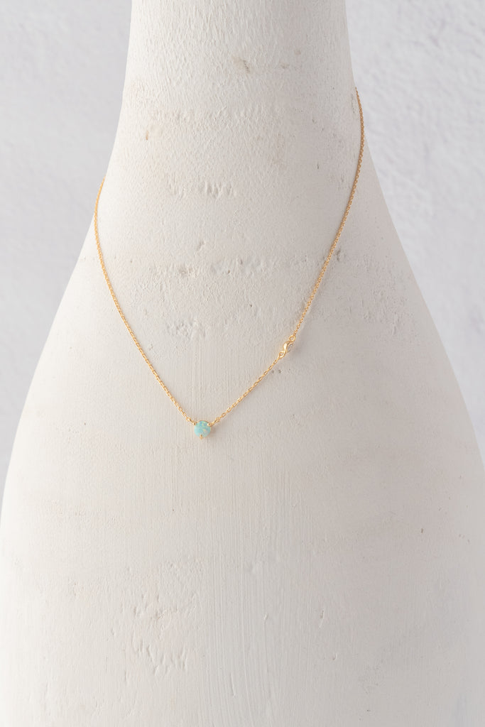 A delicate little piece for your necklace layer, or a lovely solo number for lovers of petite jewelry! It boasts a gold-plated chain, with a glimmering opal pendant and a cubic zirconia accent.