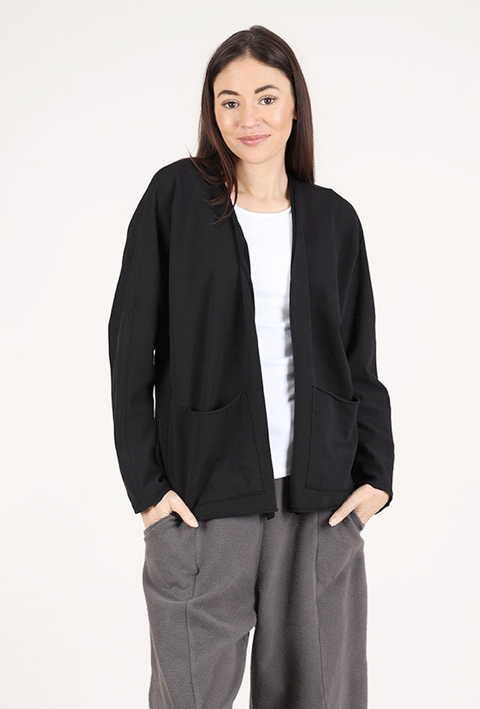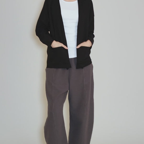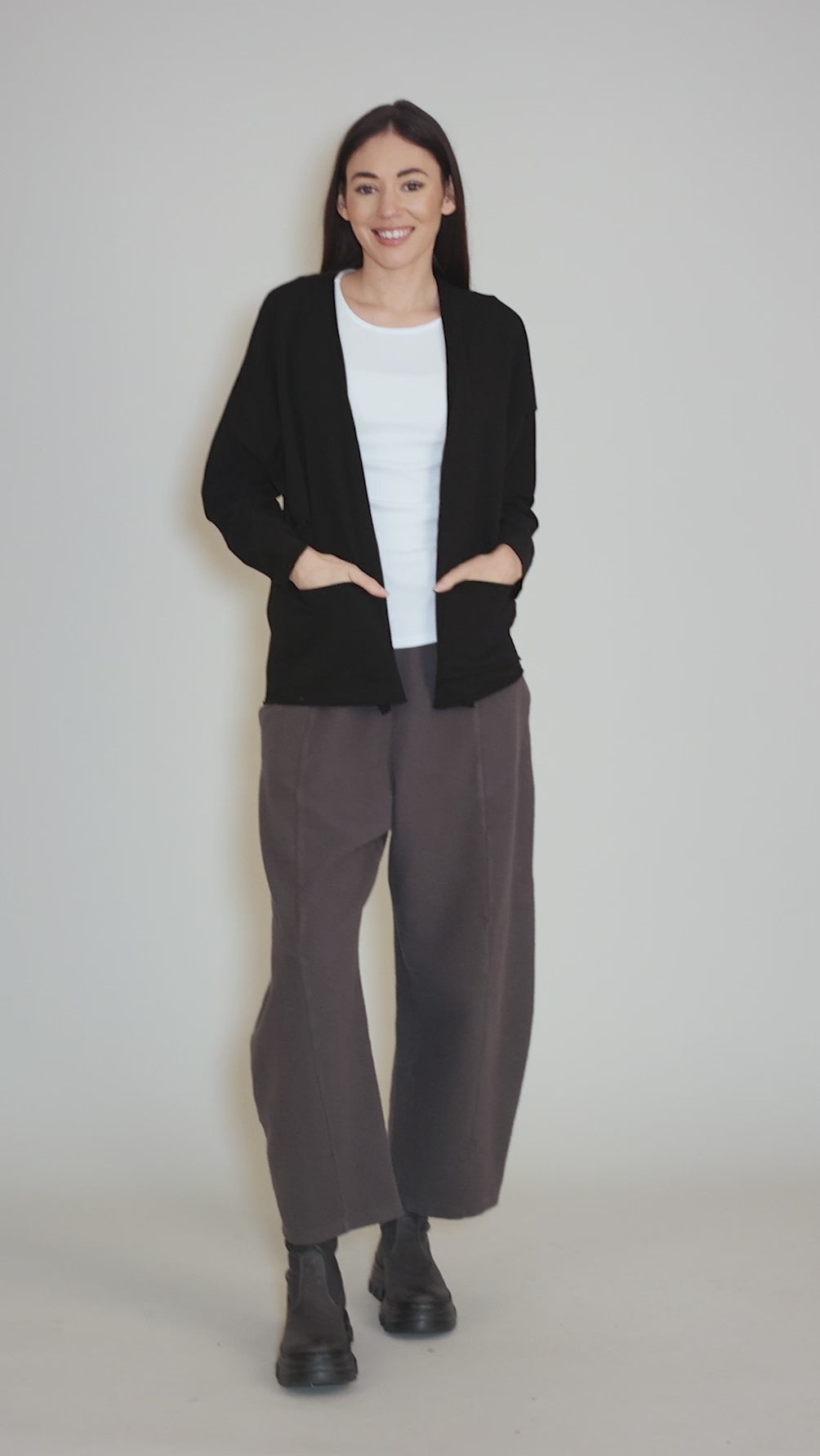 Crafted in a soft French terry knit, this oversized, relaxed cardie boasts easy dolman sleeves and an open-front construction. Patch pockets sit on the hips, and the fit is very generous. We find this is running on the large side.