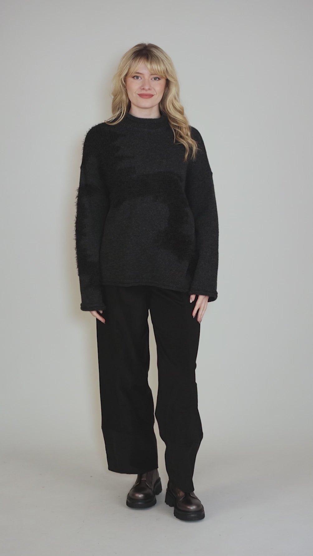 Done in a lightweight -- though still very warm! -- extra-fine merino wool blend, this handsome sweater has a short mock neckline, extra-long sleeves and a drop-shoulder construction. The deliberately boxy silhouette offers a slouchy, oversized fit.
