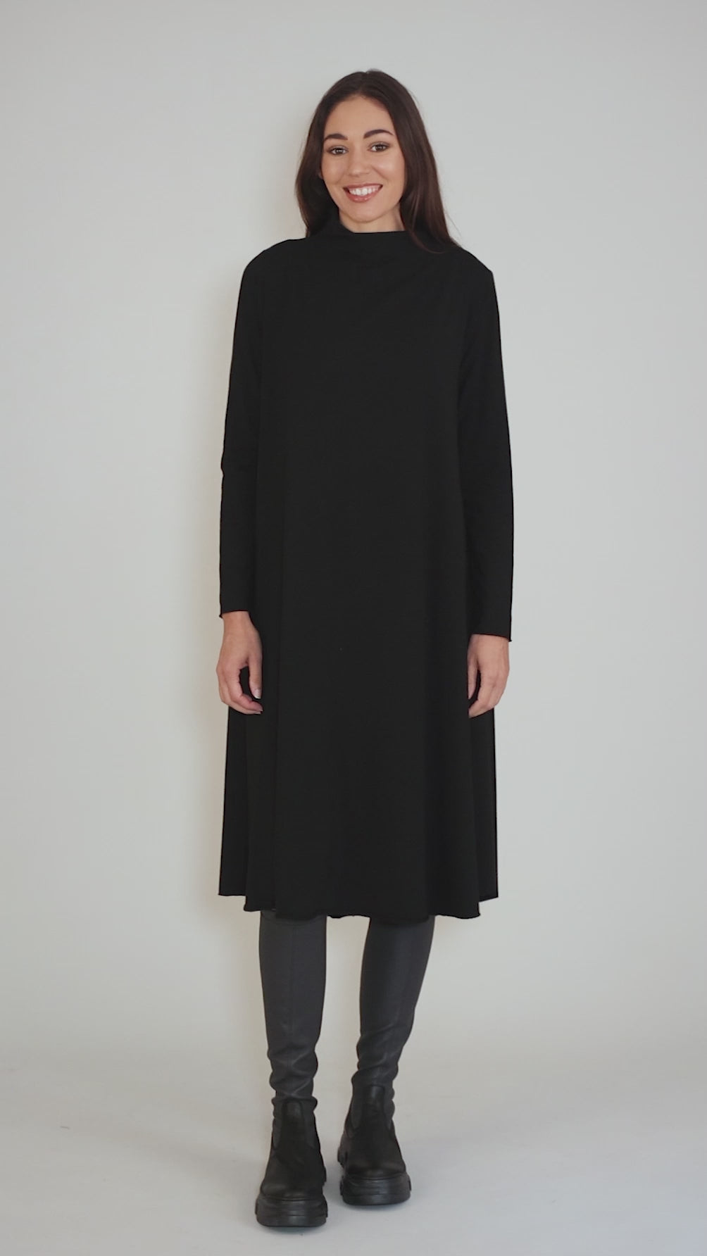 Crafted in a smooth, cotton jersey knit blend, this not-so-basic basic has a short funnel neckline, a set-in shoulder and long sleeves. The silhouette is a very full A-line, with a subtly high-low hemline. But the headline here is the draped and tucked details in back, which adds further ease to the fit. We suspect it could also be worn front to back, too! Runs true to size to slightly large.