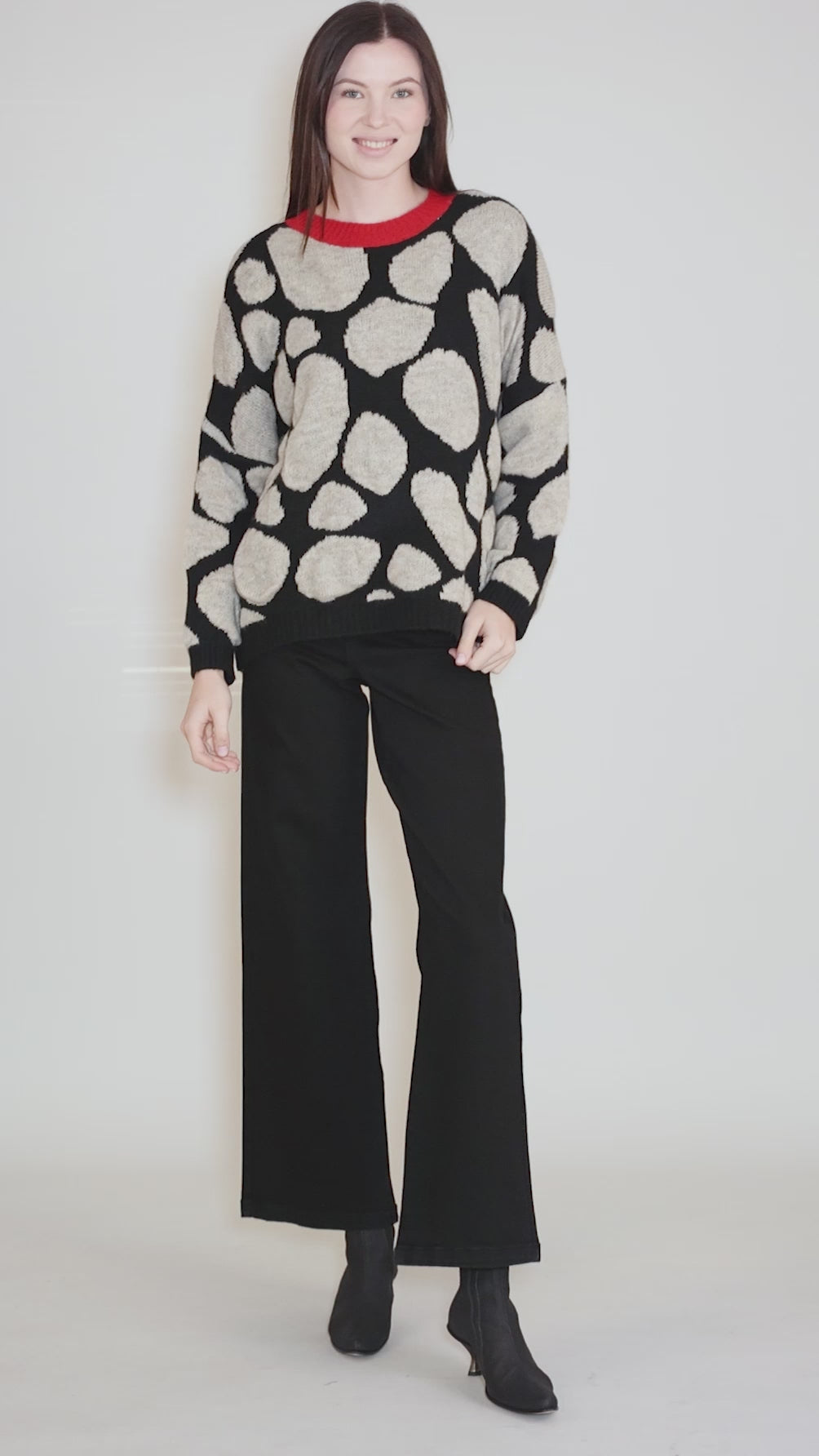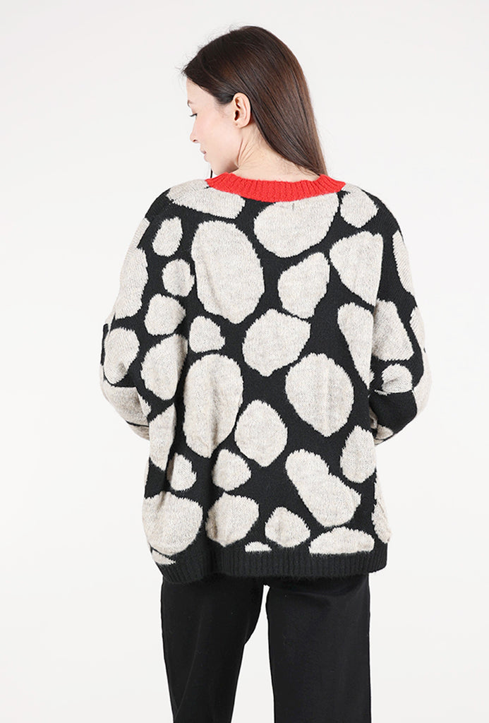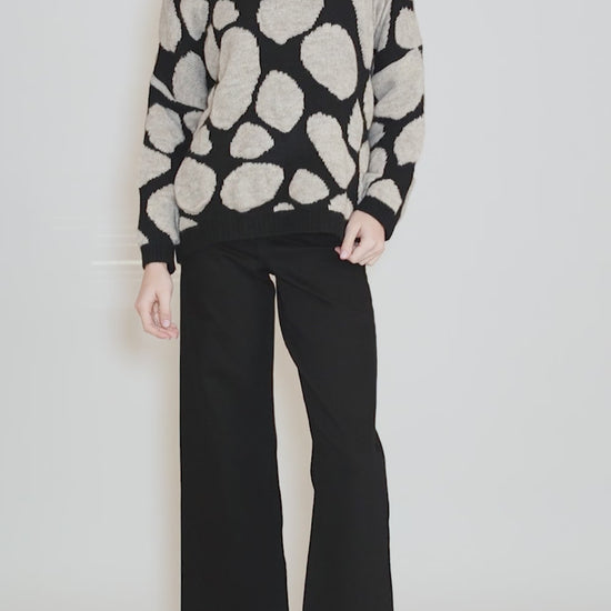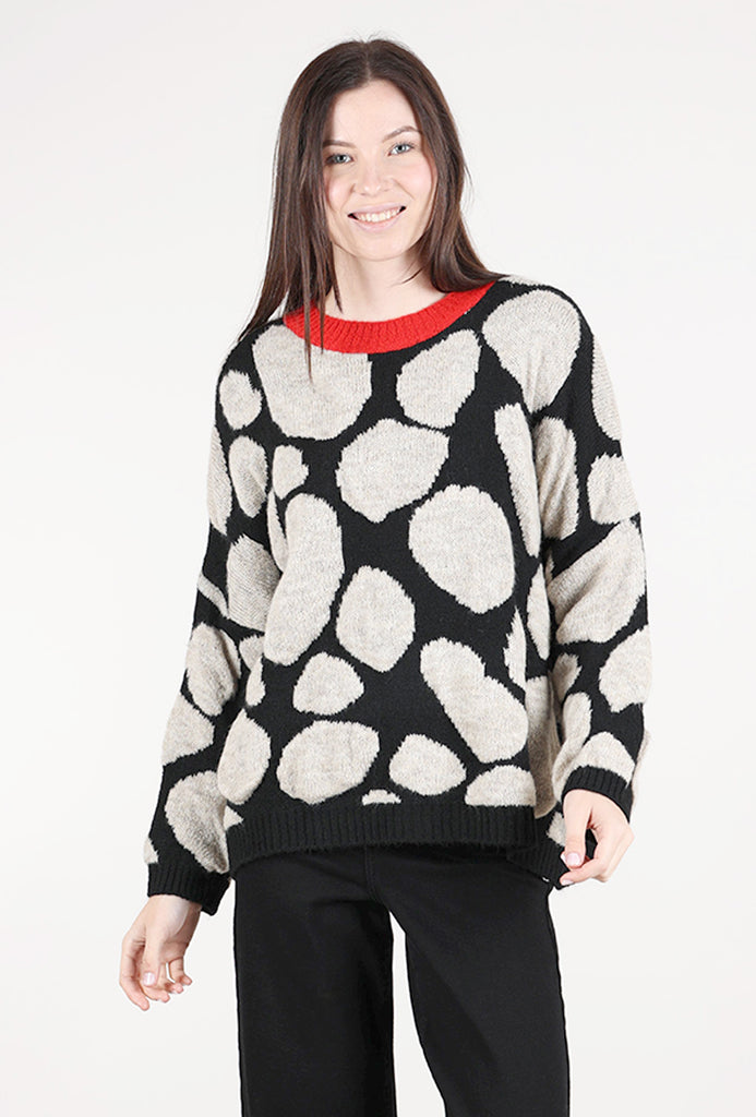 Knit in a soft poly-viscose knit, this oversized sweater has a rounded neckline, with a drop-shoulder construction and extra-long sleeves. The body is deliberately boxy, with a lightly ribbed hemline and very relaxed fit.