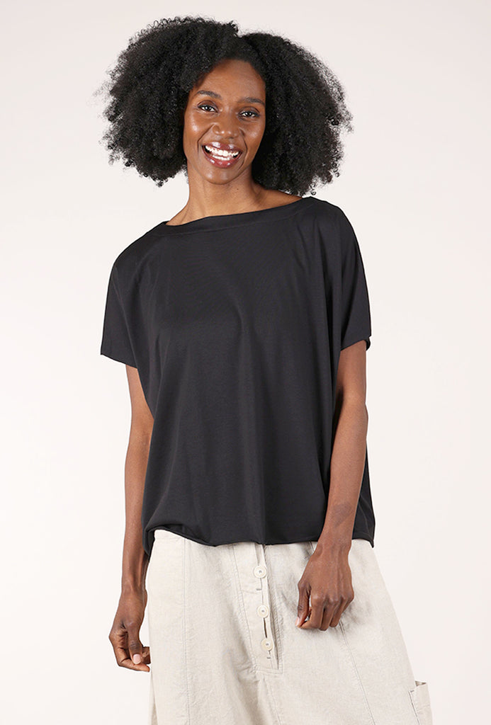 Made in a super-smooth pima cotton, this refined T-shirt has a boat neckline, short dolman sleeves and a deliberately boxy silhouette. We find this tee punches above its weight in terms of dressiness and versatility!