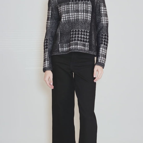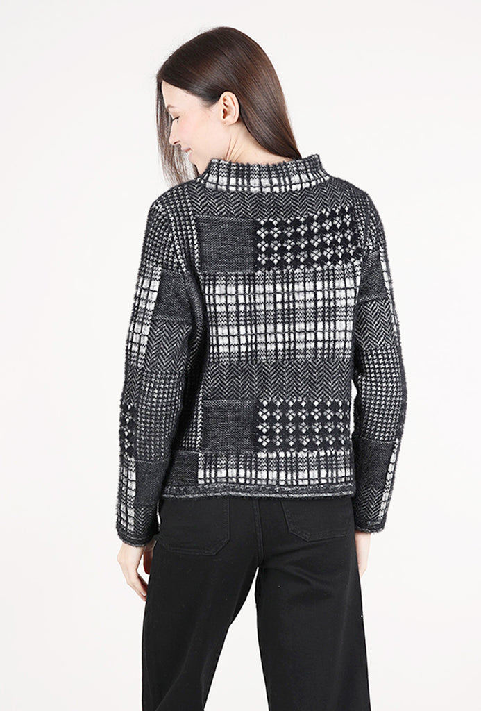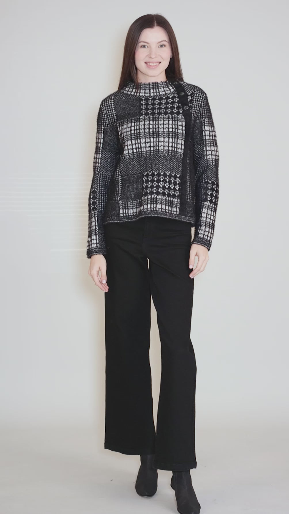 Made in a fuzzy knit blend, this trim pullover has a short funnel neckline, with a set-in shoulder and long sleeves. The body is a trim A-line, with a hip-skimming length and relaxed fit. A decorative button detail sits on one shoulder.