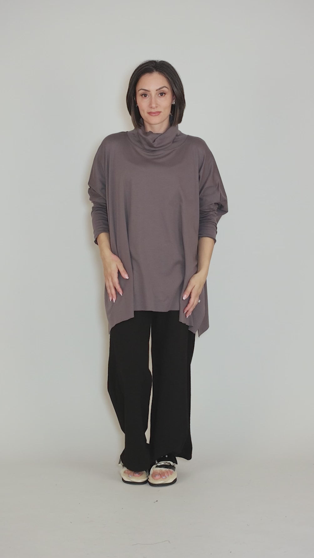 Always a hit with our in-store customers, this relaxed turtleneck is done in a smooth cotton jersey. It has a wide, boxy silhouette, a dropped-shoulder construction and sleeves that narrow through the forearm. Deep side slits aid in ease of wear.