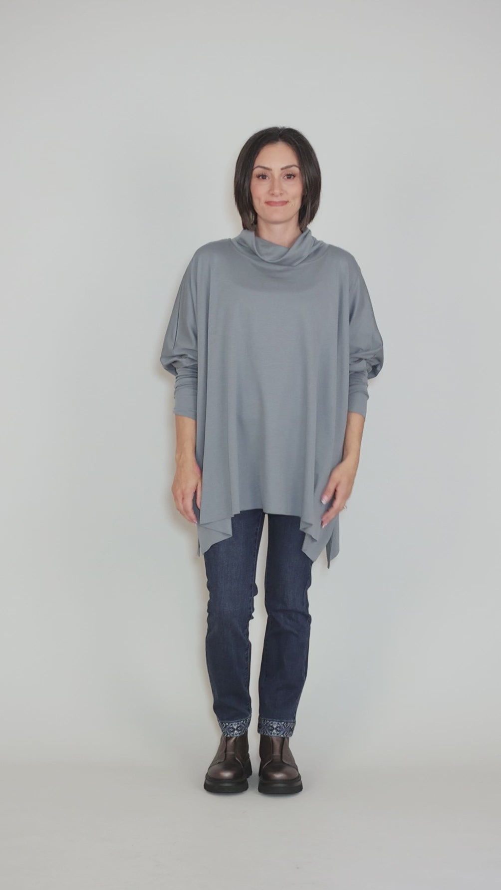 Always a hit with our in-store customers, this relaxed turtleneck is done in a smooth cotton jersey. It has a wide, boxy silhouette, a dropped-shoulder construction and sleeves that narrow through the forearm. Deep side slits aid in ease of wear.