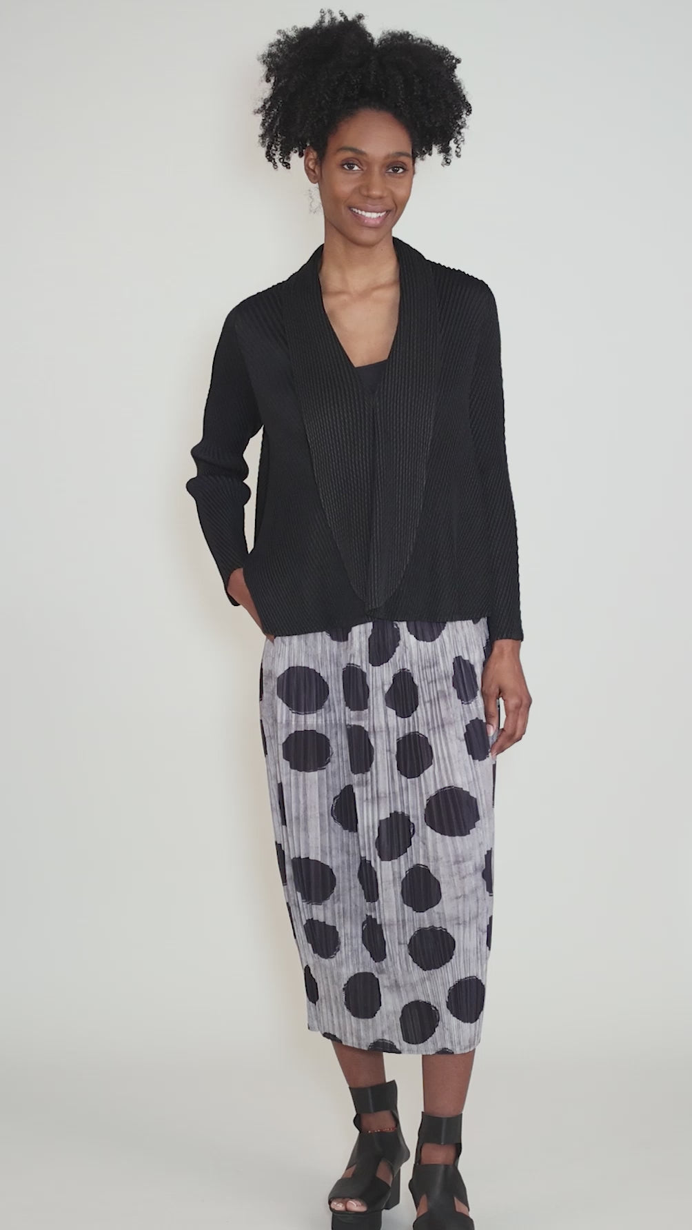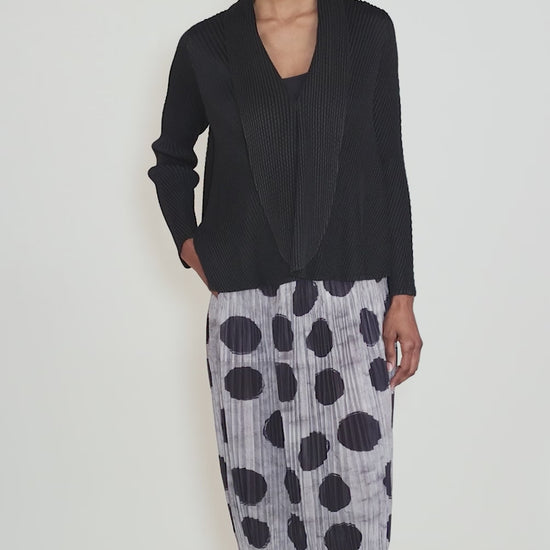 Pleated Dots Lantern Skirt, Gray/Black