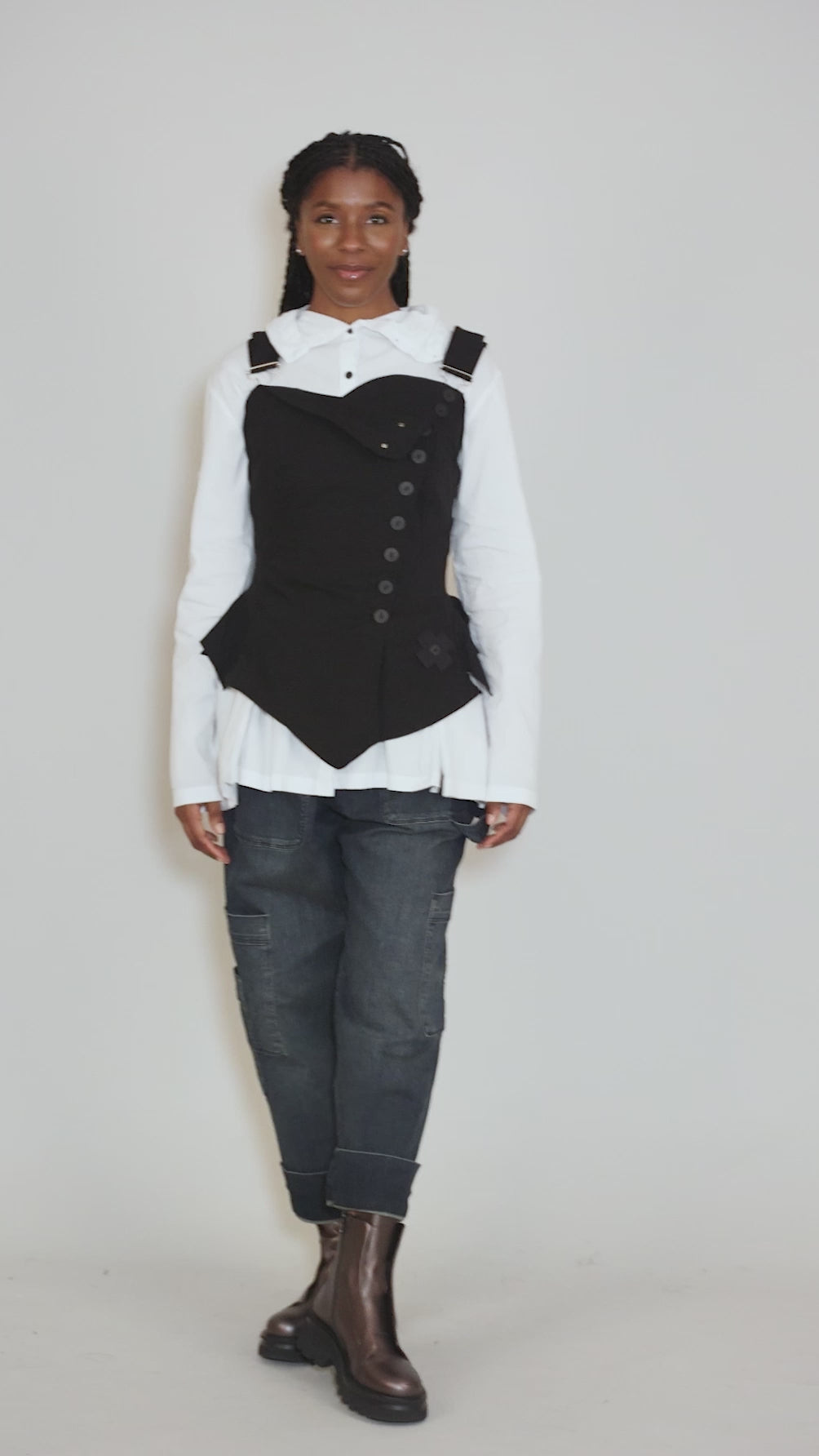 Made in a mid-weight denim with a bit of stretch, these tailored jeans have paperbag-waist styling, with a button closure on one hip and full, straight legs that cuff at the hemline. Patch pockets sit on the thighs. We find these are running true to size to slightly large.
