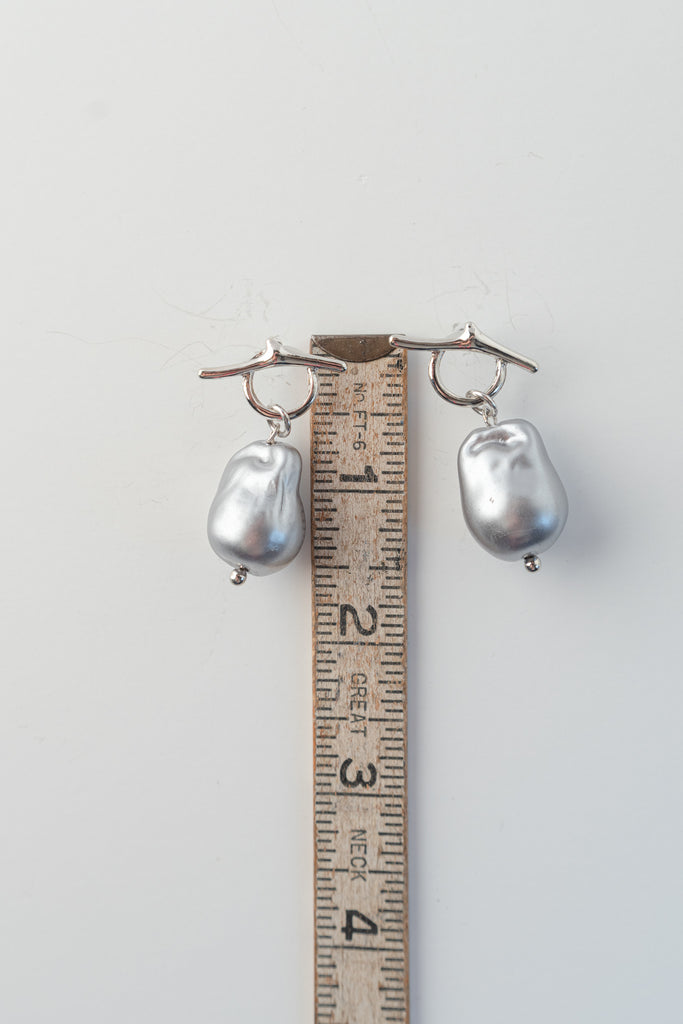Chic and sculptural, these earrings feature organic silver-tone drops suspended from modern toggle hoops. The fluid, baroque-inspired shape adds an artful edge, while the metallic finish keeps them effortlessly refined.