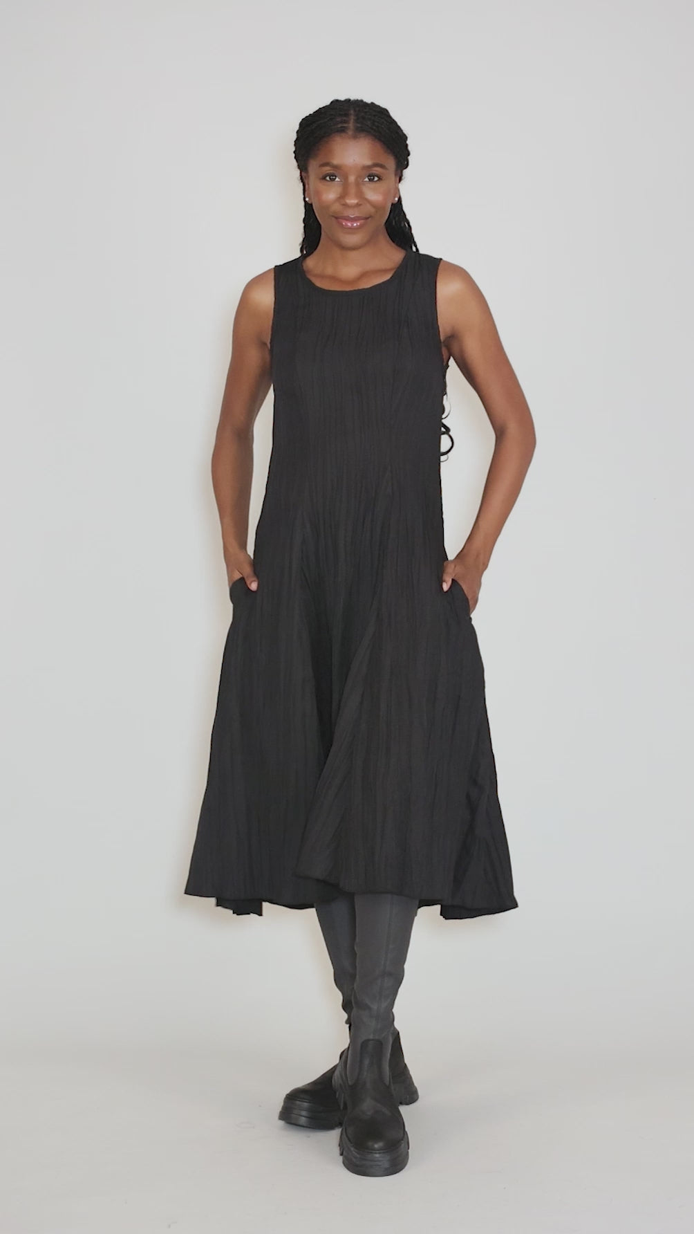 Made in a finely pleated, lightweight woven blend with a subtle sheen, Corra has a rounded neckline and a closer fit through the bust before flaring easily through the hips for a classic fit-and-flare silhouette. Slit pockets sit on the hips. This elegant dress can dress up or down with ease. Running true to typical Porto sizing.