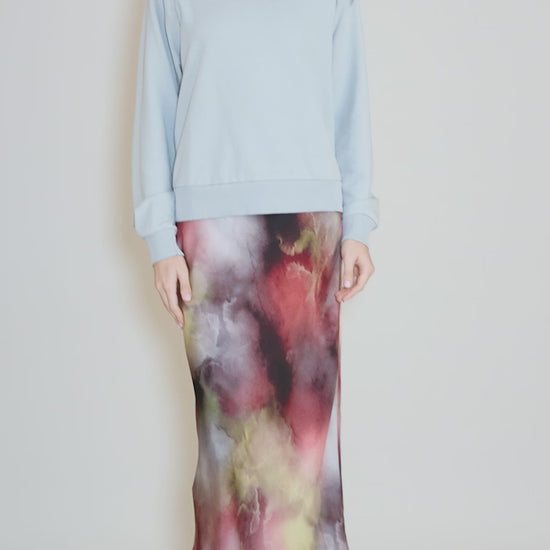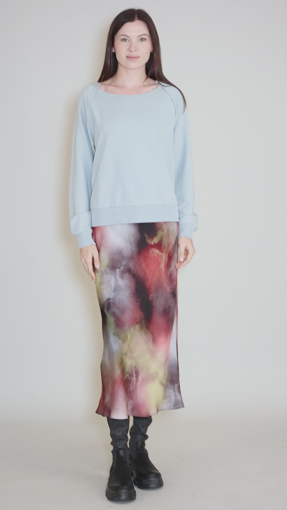 This trim sweatshirt top is made in a refined French terry. It has a wide boat neckline and long raglan sleeves. Raw, dimensional seaming down the arms and at the hemline elevate this to beyond-basic status. Runs true to size.