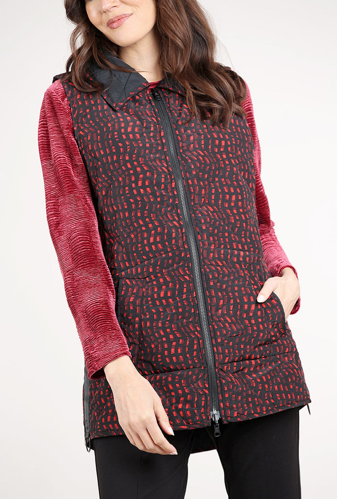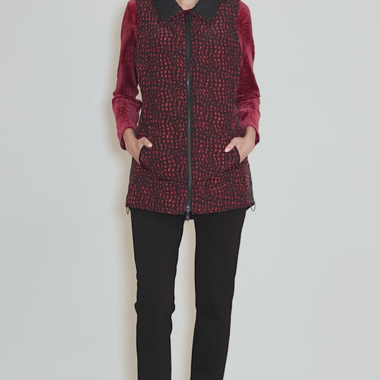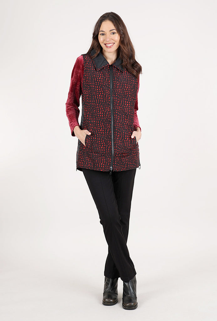 Reversible Printed Quilt Vest, Wine/Black