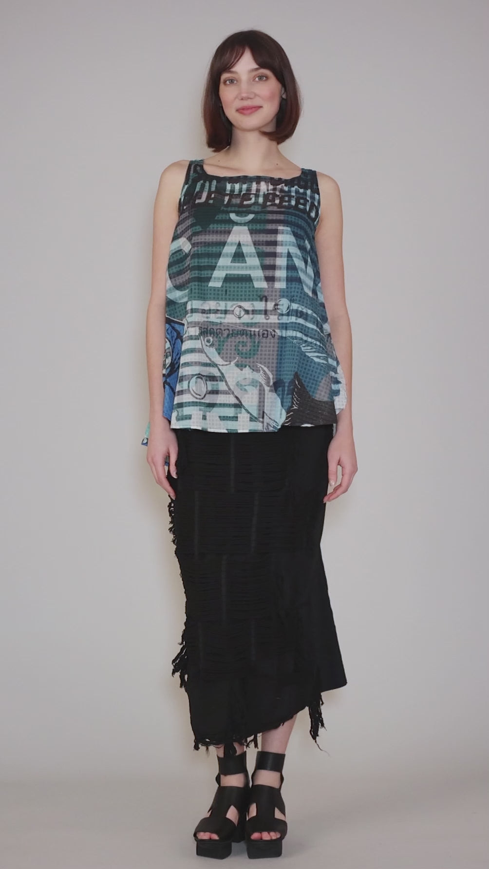 Done in a fine cotton lawn, in RBL's print of the season, this swingy tank has a squared-off neckline, bra-friendly shoulder straps and a very full, A-line silhouette. The hemline is subtly high-low, adding further swing to the look. Running true to size.