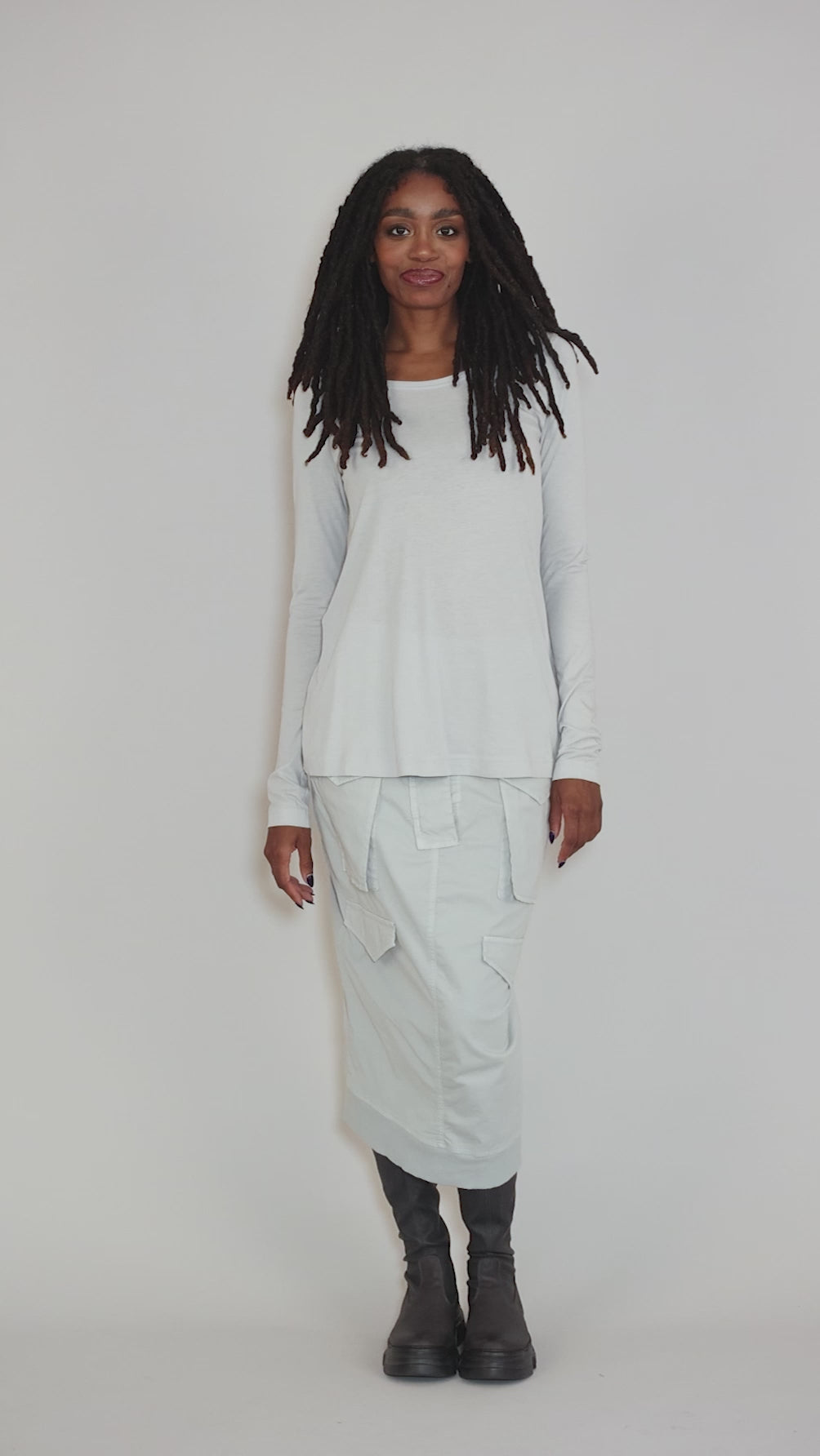 Made in a smooth, mid-weight lyocell-cotton, this essential layer tee for the Rundholz fan has long sleeves and an open neckline. The fit is closer through the bust and shoulders, but easy through the midsection and covers the bum on most. Runs true to size to slightly small.