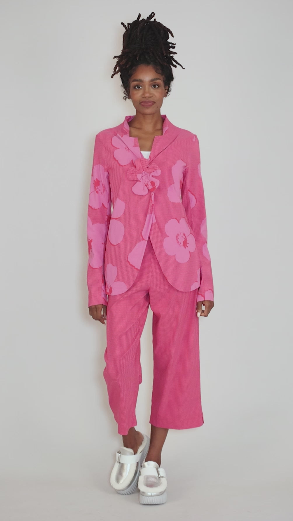 We absolutely adore these pants! They're crafted in a stretchy viscose blend with superb memory and a lightweight, sculptural hand. They have a high rise, with a stretchy waistband and inverted pleat details through the hip that set up the full, straight legs. Slit pockets sit on the hips. Running true to size to slightly large.