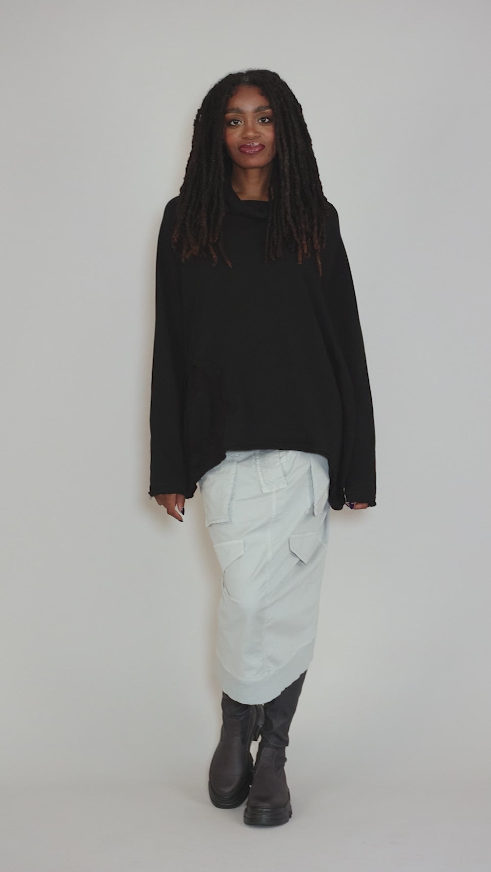 Created in a stretchy woven cotton blend, this trim skirt has a set-in waistband with a button closure and a not-too-tight body-conscious silhouette. Slit pockets sit on the hips, while patch pockets in front add that cargo-skirt vibe.