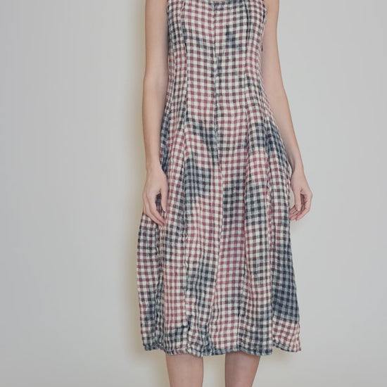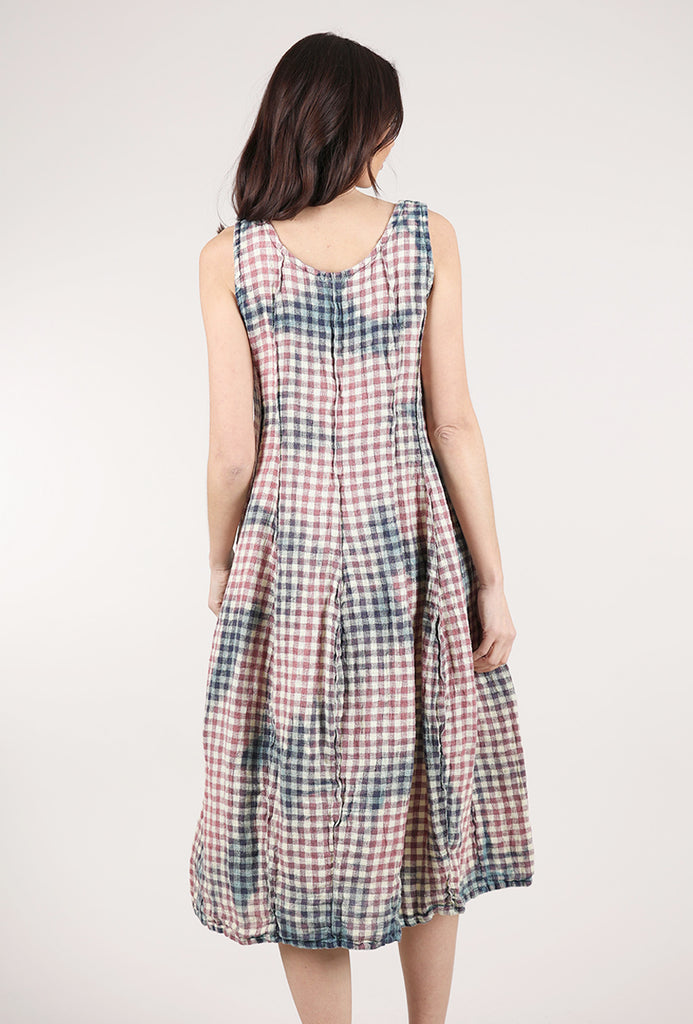Rustic Linen Check Dress, Mauve Multi