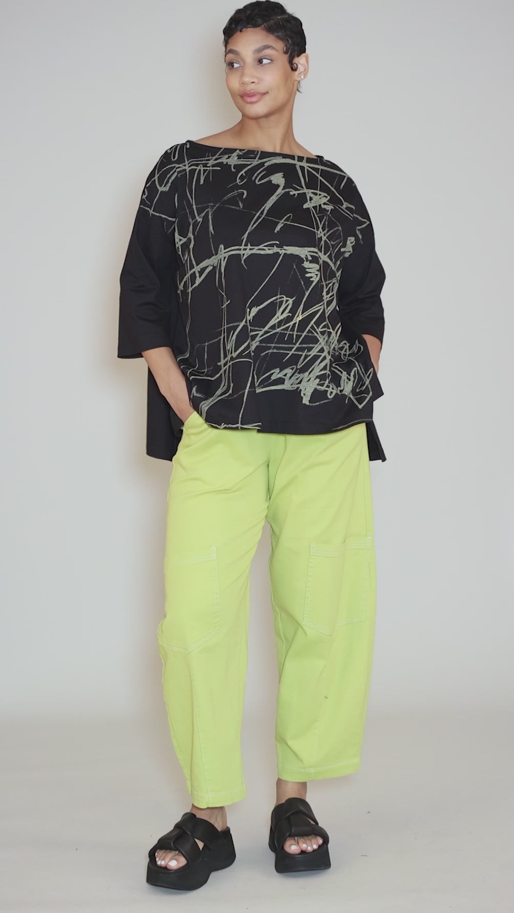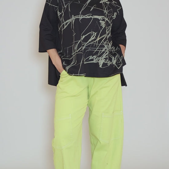 Swing Out Scribble Top, Black/Maize