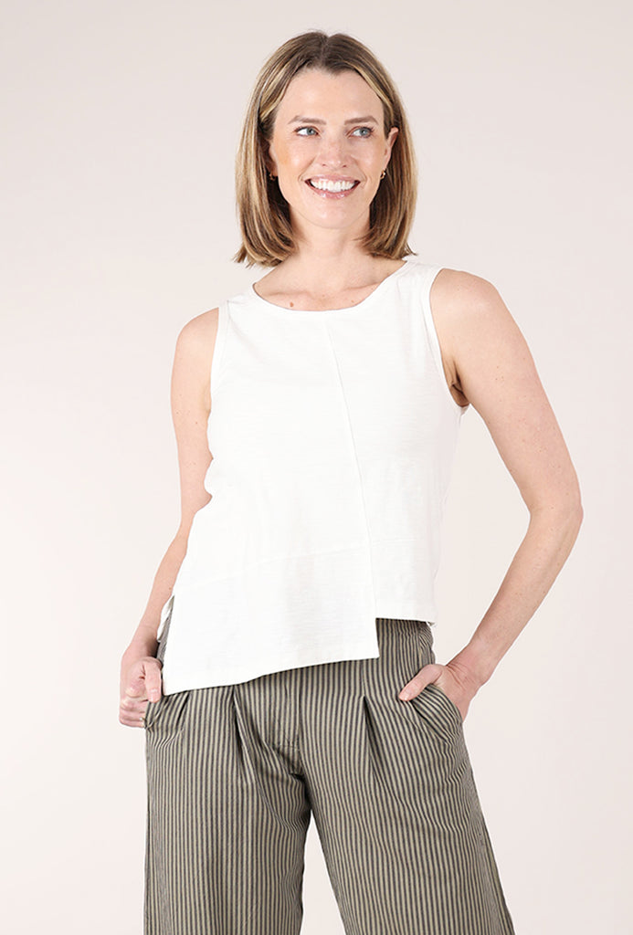 Seamed Shifted Tank, White