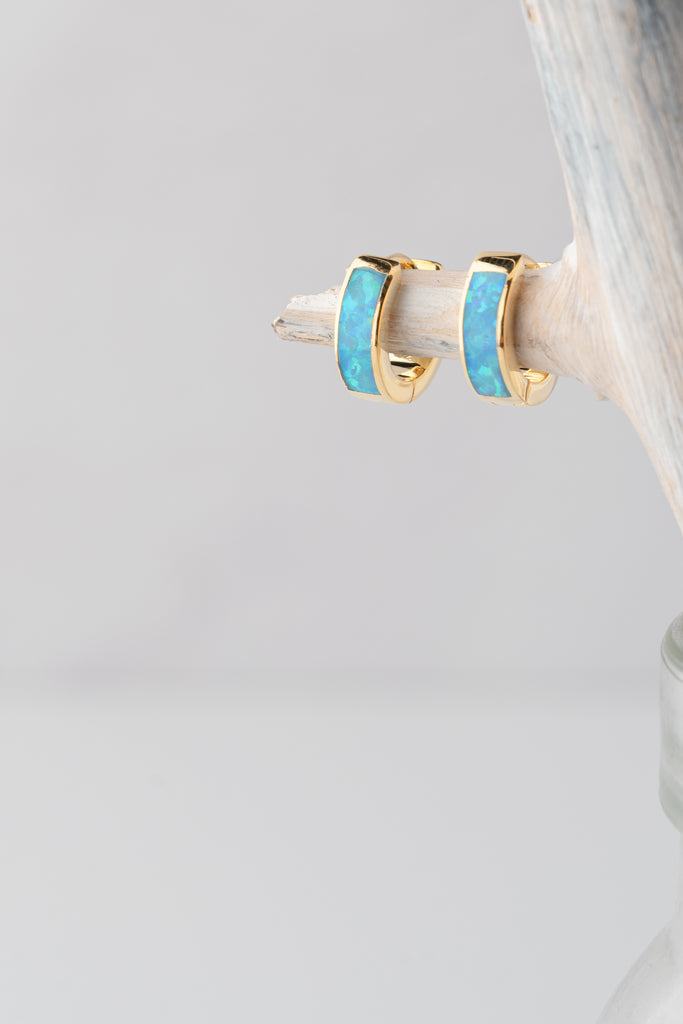These tiny statement huggies feature an eye-catching inlay of iridescent blue opal set in 14K gold vermeil. Their sleek, modern silhouette adds a pop of luminous color to your ear stack, making them perfect for everyday wear or pairing with your favorite layers.
