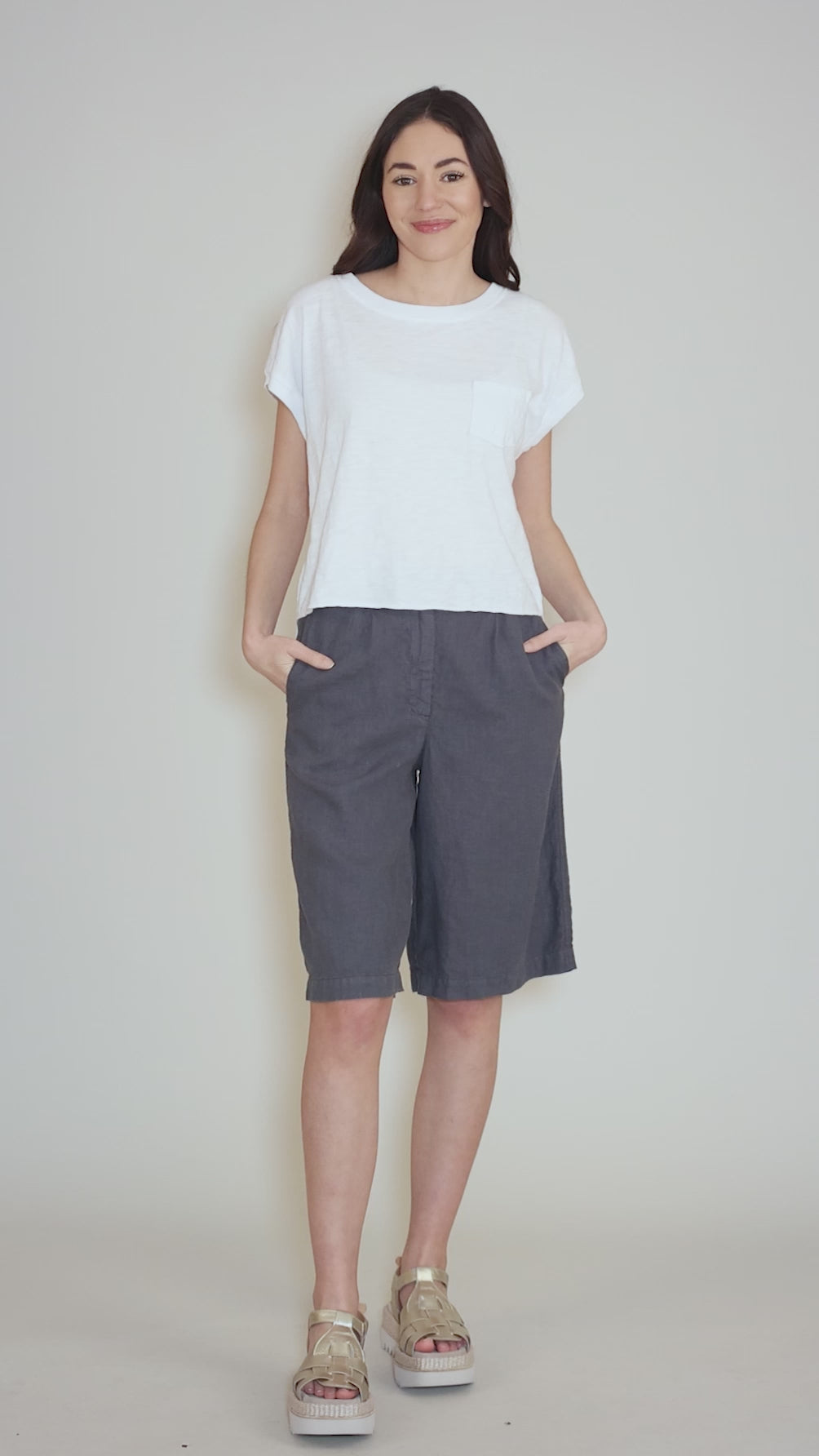 Such a versatile T-shirt! Made in a Mododoc's signature cotton slub, it has a rounded neckline, short dolman sleeves and a deliberately boxy silhouette. The hemline is slightly high-low, and a single patch pocket sits on one side of the chest. We find this runs a bit on the large side.