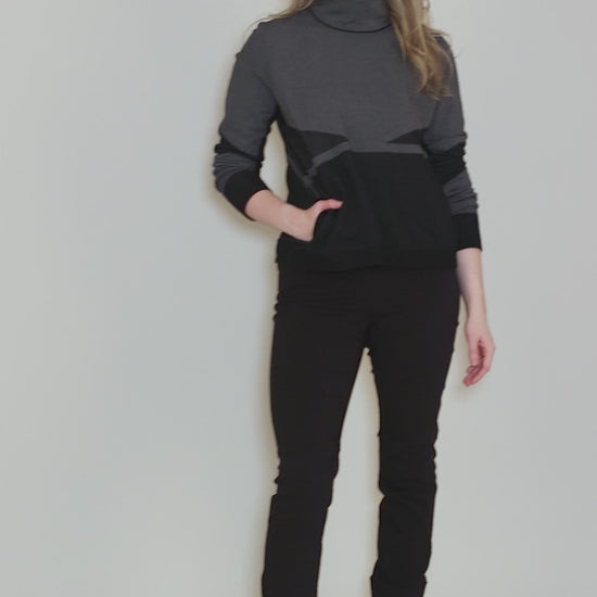 This feels so good on! This sturdy new pullover from Smartwool combines the brand's Intraknit fabric with high-tech accents to provide warmth where you really need it and mesh ventilation where you don't (the underarms!). It has a funnel neckline, with a set-in shoulder and long sleeves. The body is somewhat shrunken, with a kangaroo pocket in front and long, cuffed sleeves. The fit is rather relaxed; if you are used to sizing up in Smartwool's base layers, we suspect your regular clothing size will be just fine in this style.