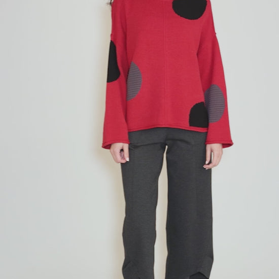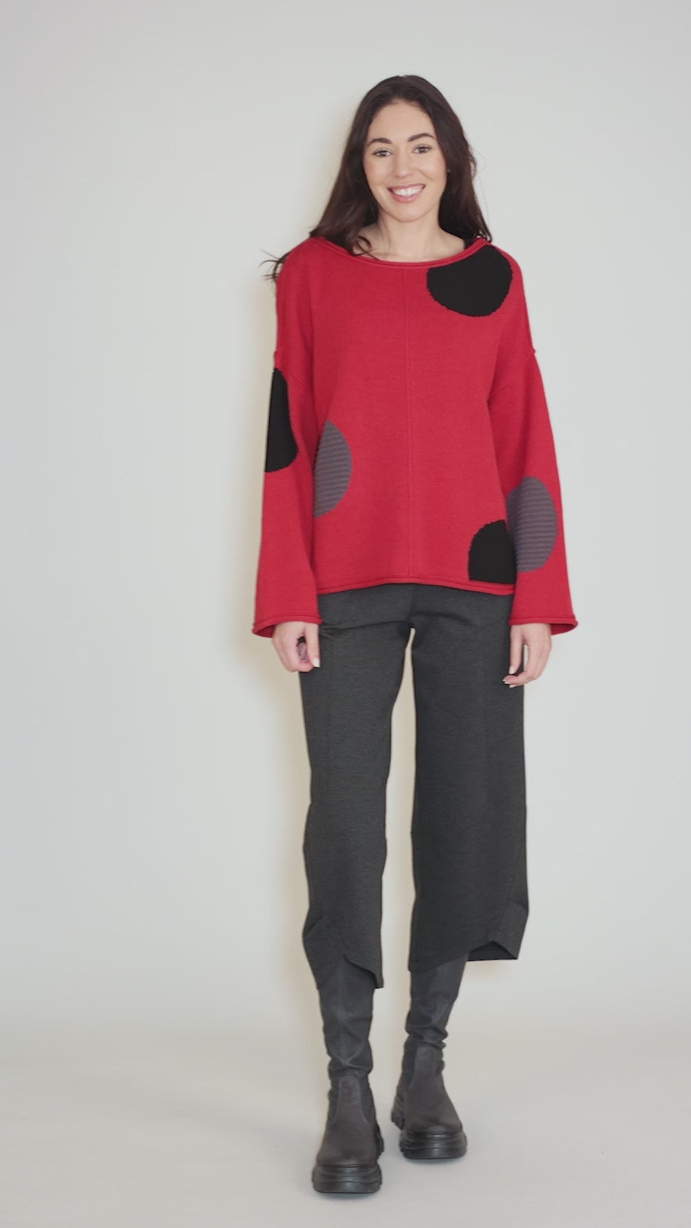 Love this color combo! Knit in a supple cotton yarn with a bit of body, the Circle pullover has a boat neckline, with a drop-shoulder construction and bracelet-length sleeves. The body is a trim A-line, with a hip-skimming length.