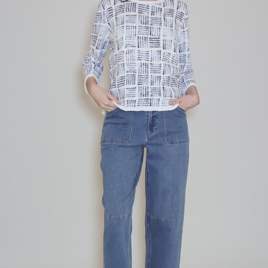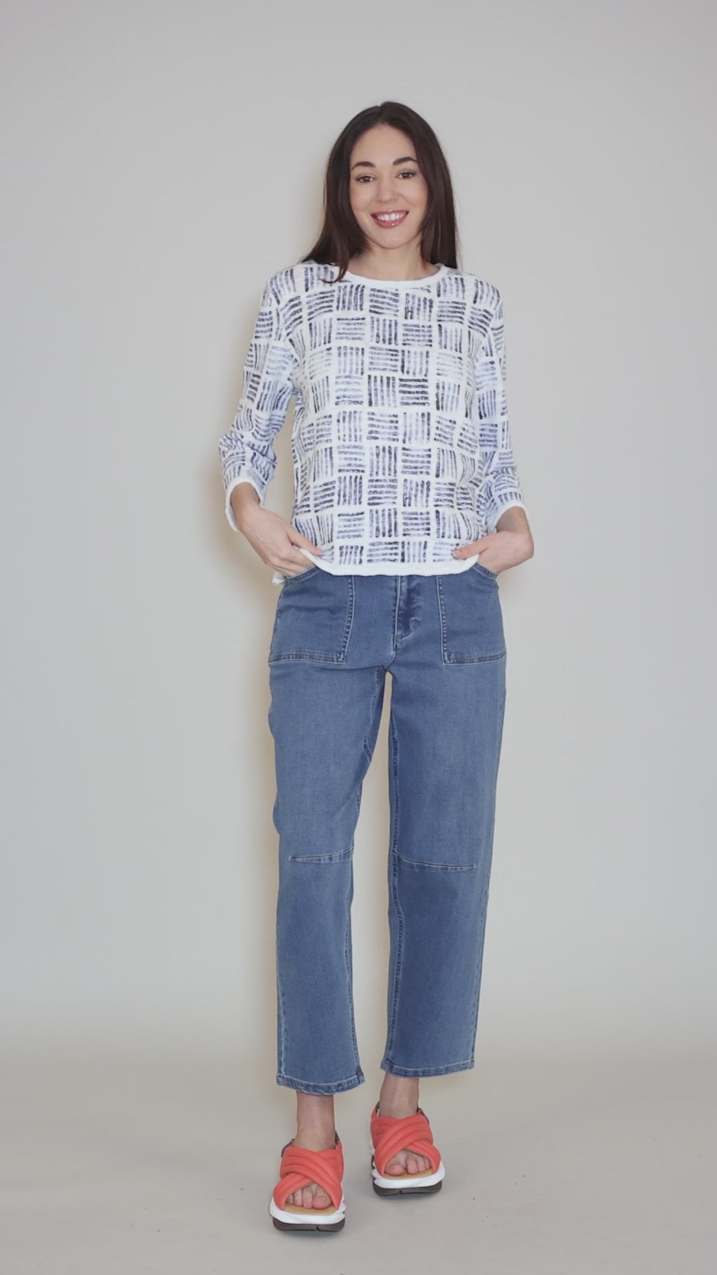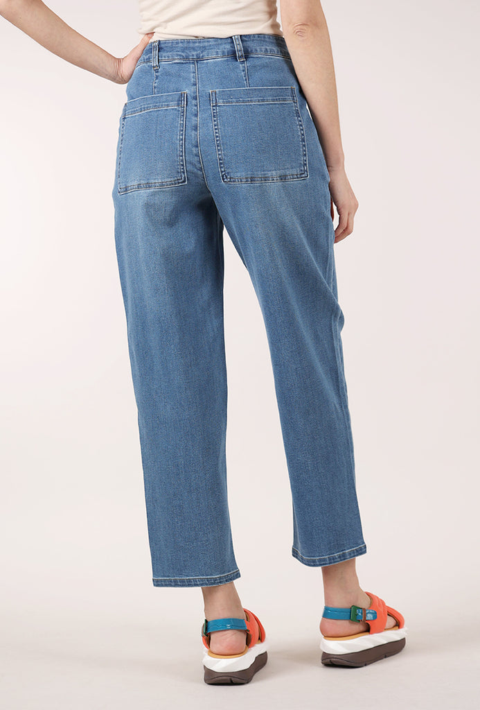 These on-trend jeans are made in a soft, stretchy cotton denim. They have a higher rise, with a button closure at the waist and a zip fly. Patch pockets sit on the front hips and the rear, and the barrel-shaped legs are relaxed. We find these are running true to size.