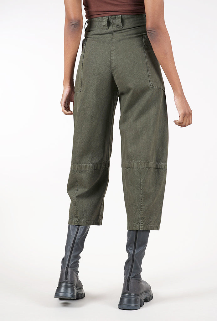 These shapely pants feature a double-button closure at the set-in waistband and a hidden zip fly. The legs are barrel-shaped, with seamed details at the knee and patch pockets on the hips. Just super cute! Running a bit small in the waist, but true to size elsewhere.