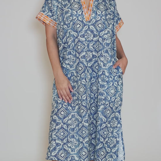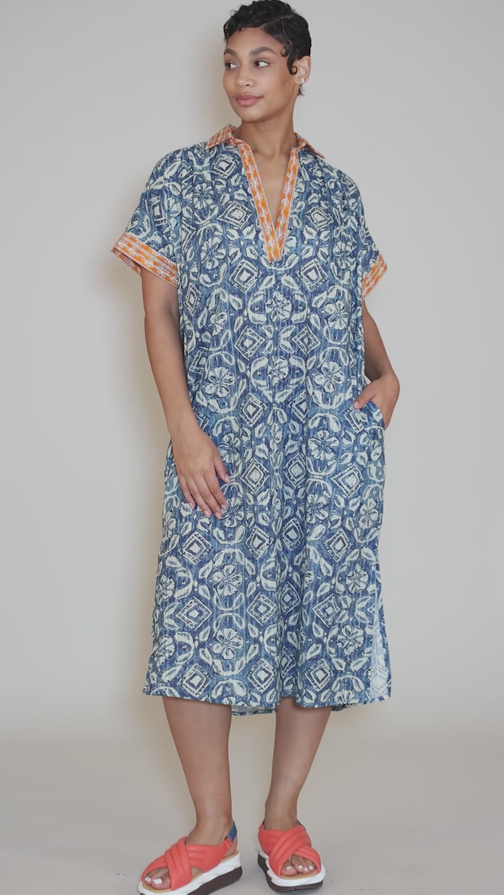 Made in fine cotton lawn, Tallulah has a retro vibe that makes us smile! This Dolma dress has short sleeves and a notched neckline; contrasting trim makes up the collar, placket and shirt sleeves. The fit is closer through the bust, before flaring into a trim, A-line silhouette. Runs a bit on the small side.
